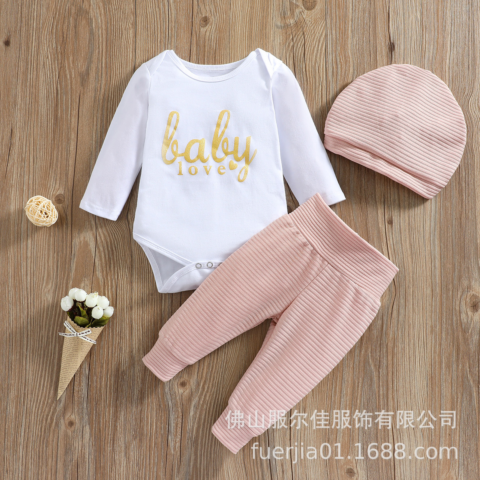Главная страница > Осенняя Внешняя торговля детская одежда оптом детский комбинезон с длинными рукавами и буквами футболка + брюки со шляпой
