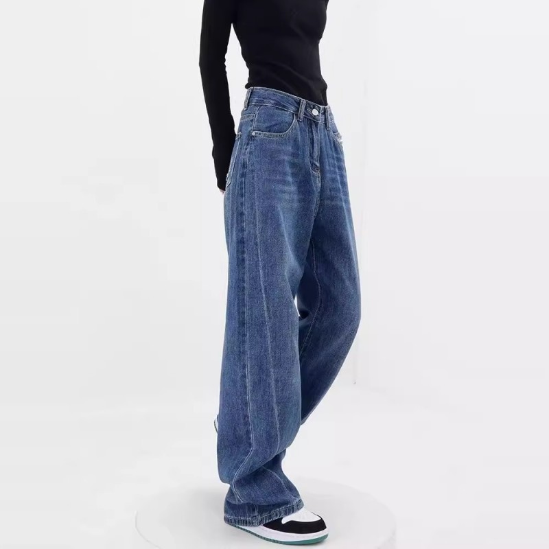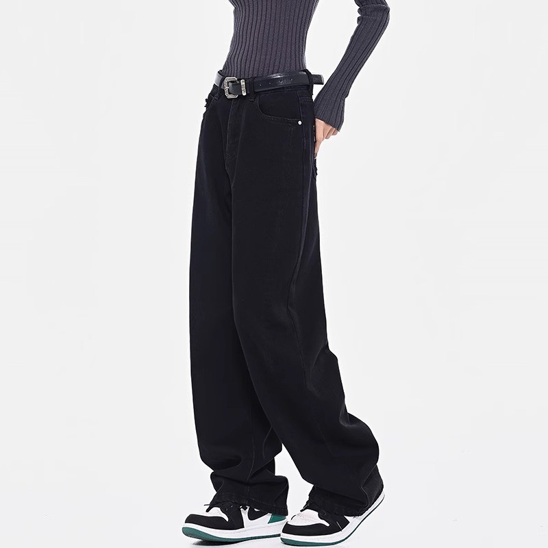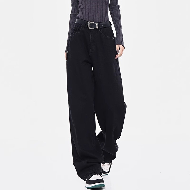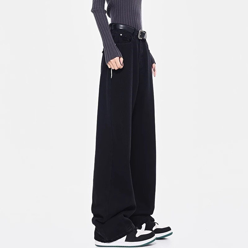 Главная страница > Черные прямые джинсы для женщин, модные универсальные новые утягивающие брюки с высокой талией больших размеров, повседневные свободные драпированные широкие брюки