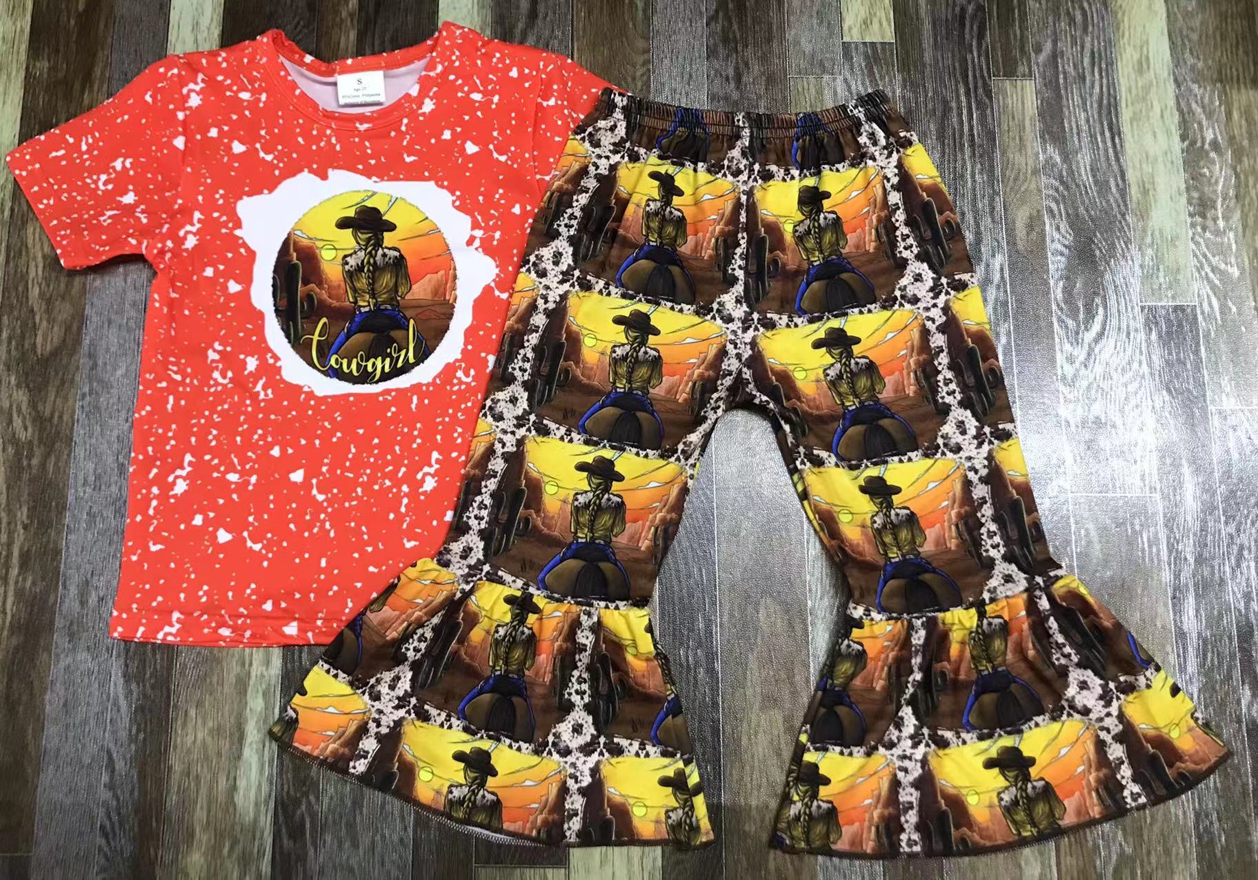 Бутик внешней торговли костюмы для младенцев и малышей оптом сапоги и шапки для девочек весенне-летние брюки-клеш с короткими рукавами в стиле вестерн