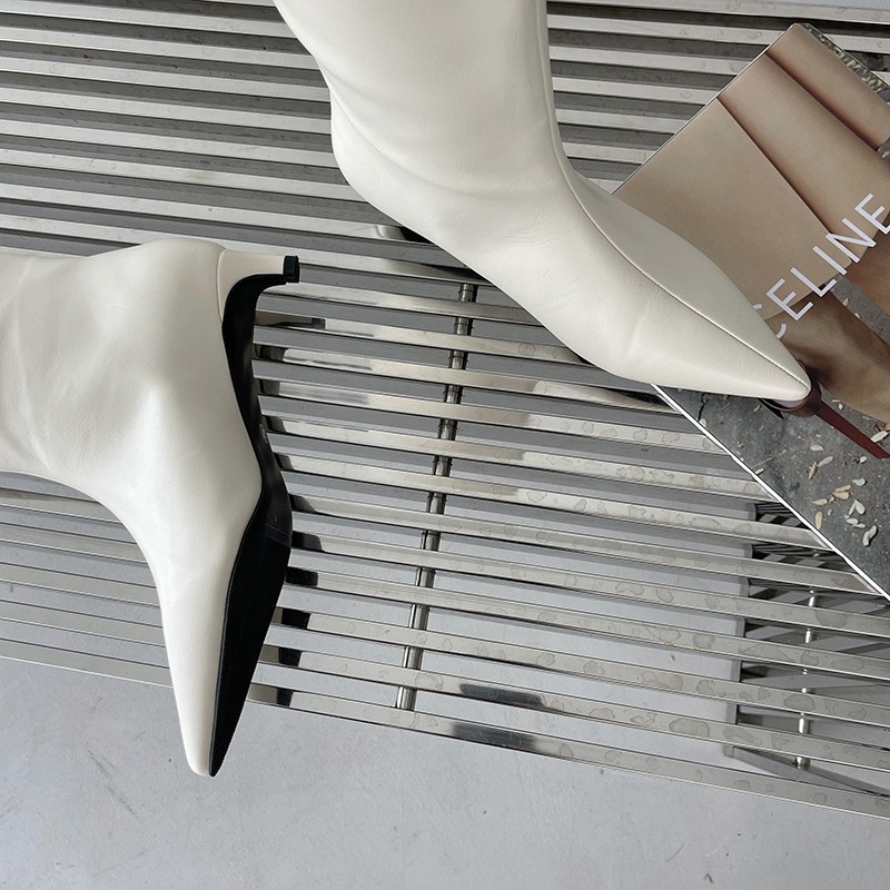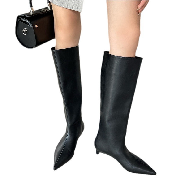 Главная страница > Новые модные широкие ботинки осень 2024, корейский стиль, заостренный носок, без застежек, высокие ботинки из мягкой кожи на низком каблуке-китенке