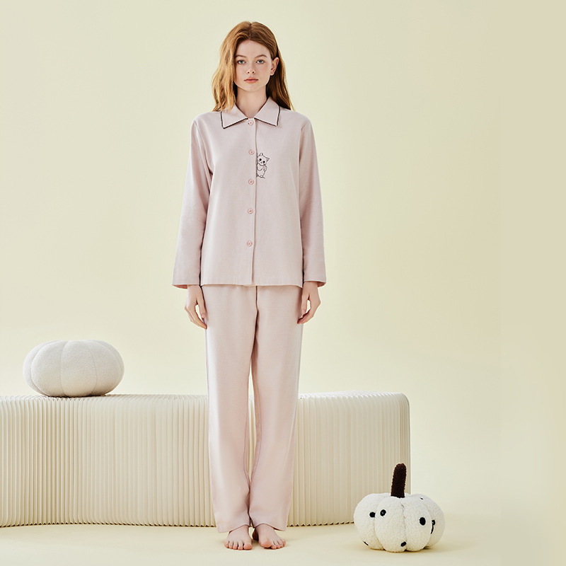 Категория А Тканые шерстистые хлопчатобумажные пижамы с вышивкой