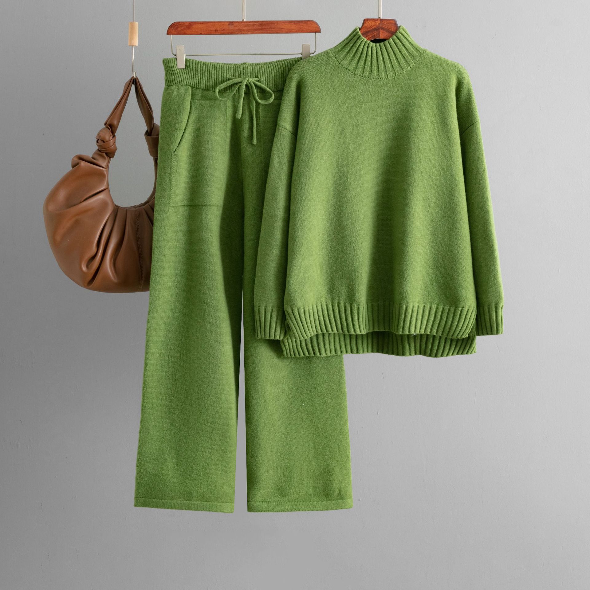 Главная страница > Женский зимний трикотажный костюм 2025 года, утолщённый свободный свитер с полугольфом и длинными рукавами, модный двухкомпонентный комплект для женщин (внешняя торговля)