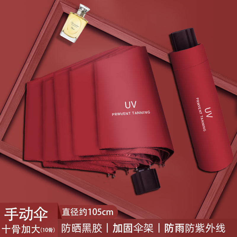 Полностью автоматический 10 костей бордовый красный-черный зонтик