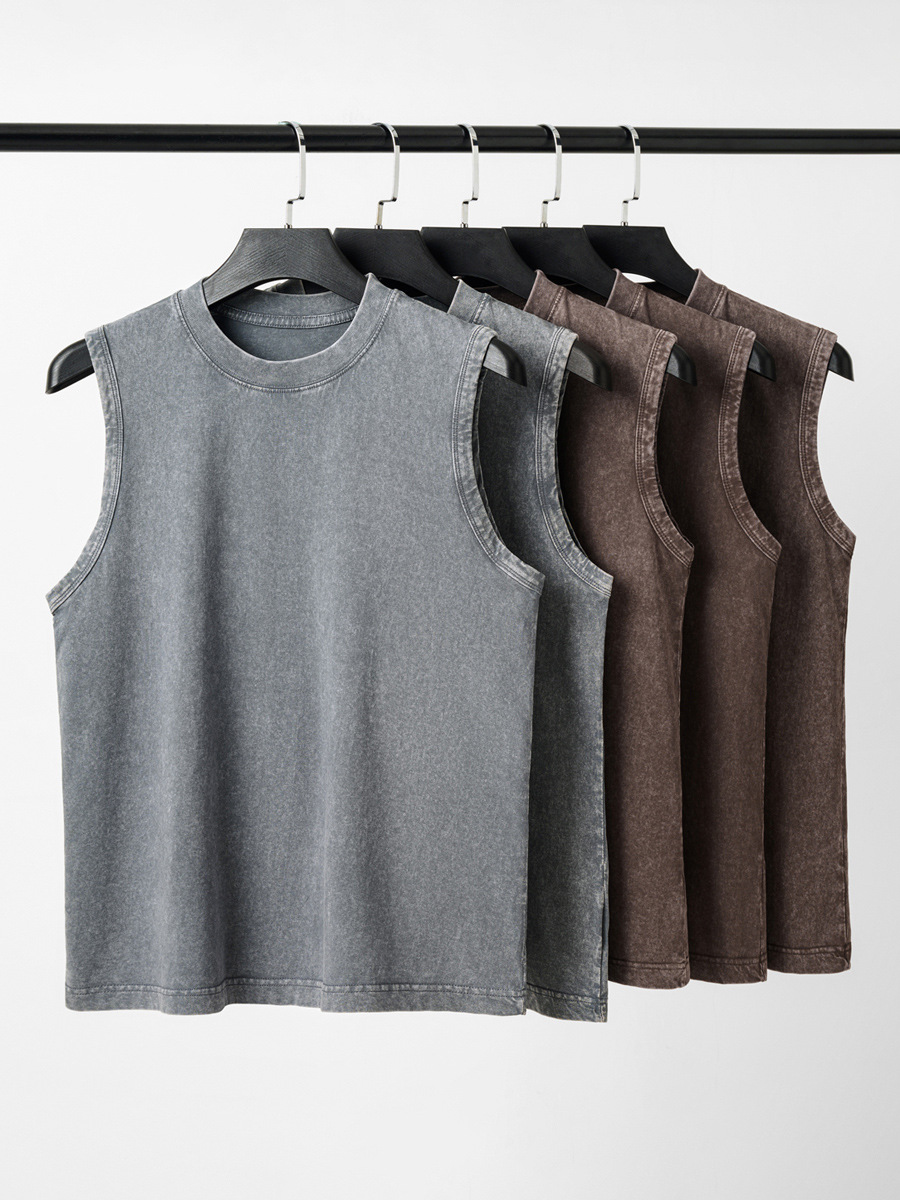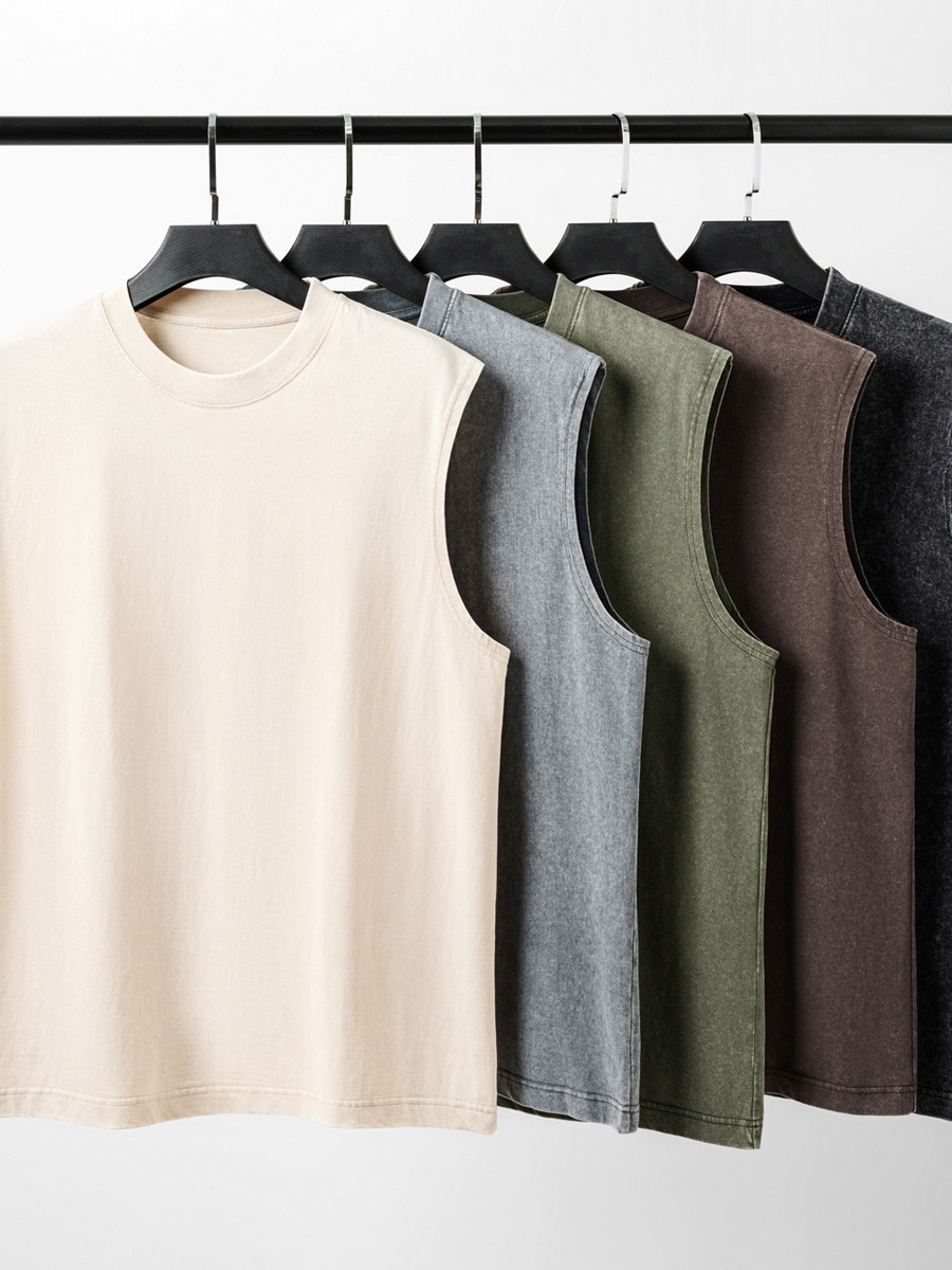 Главная страница > 230 г хлопчатобумажная европейская и американская высокая улица hiphop ретро вымытый старый жилет без рукавов мужской повседневный свободная футболка с плечом
