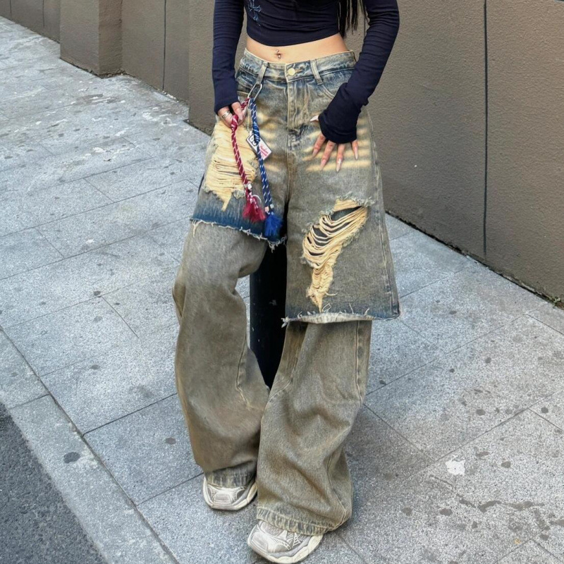 Главная страница > Трансграничный AliExpress американский ретро большой размер стирает старые две джинсы