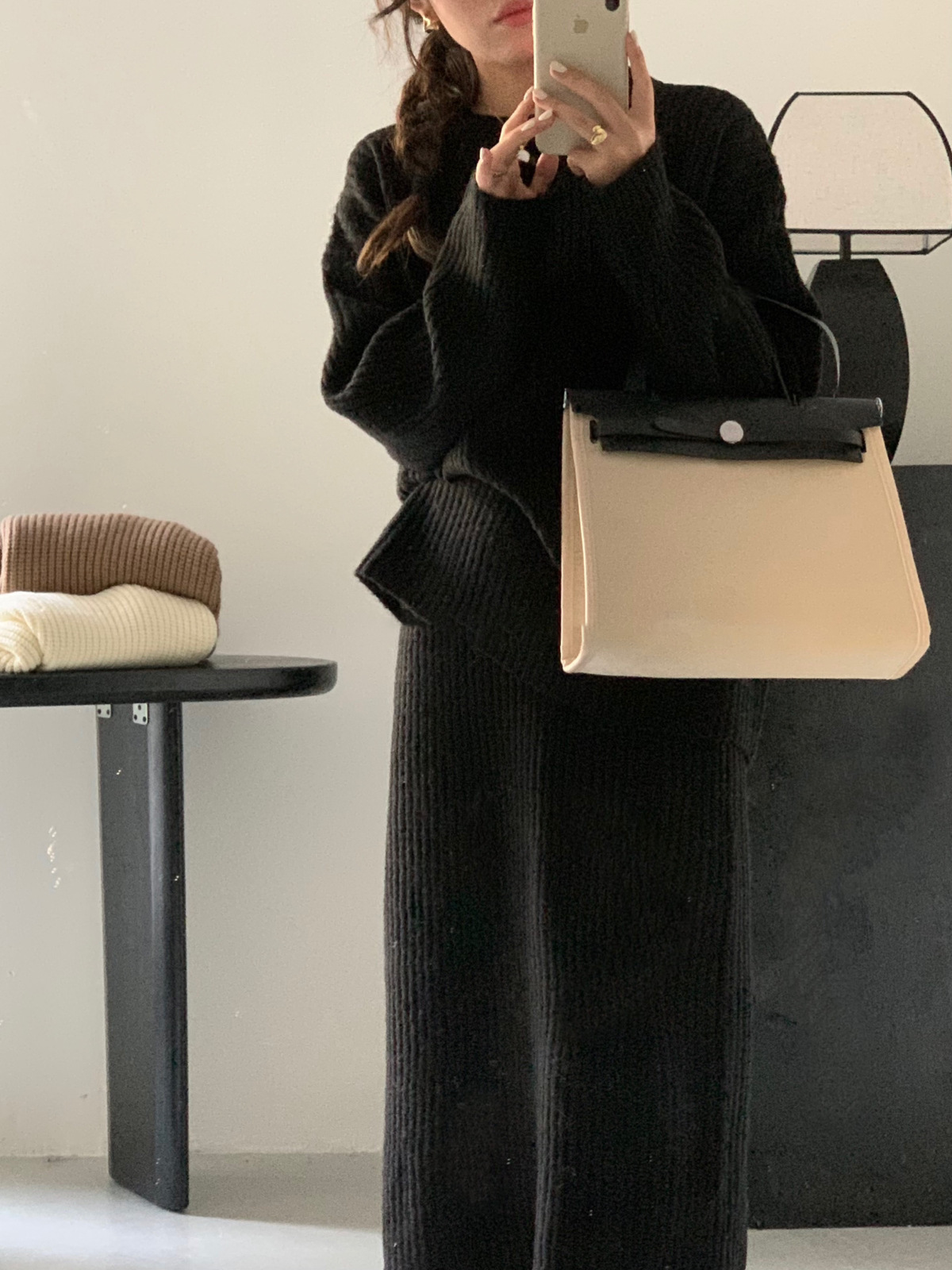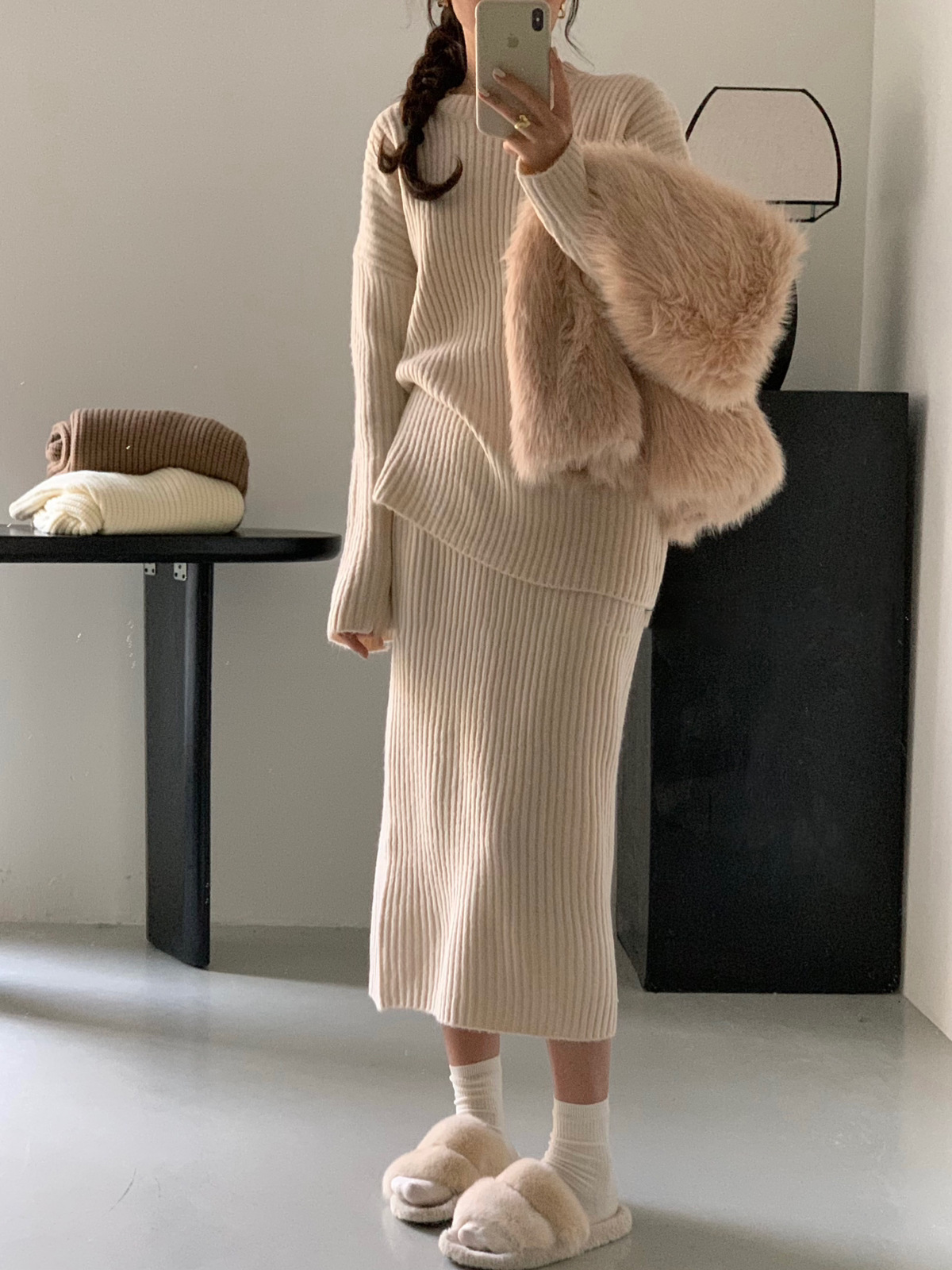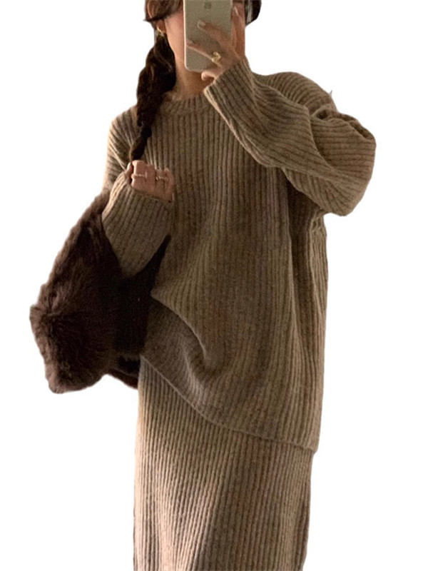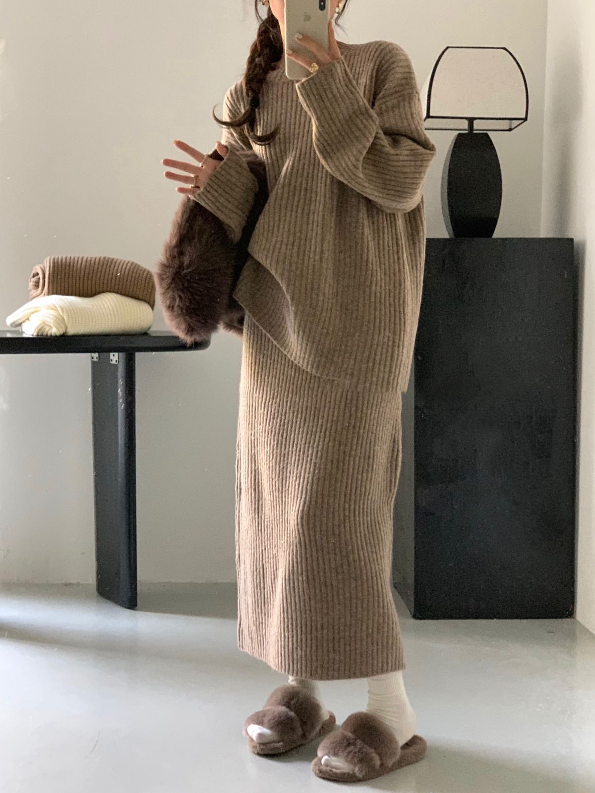 Главная страница > Ленивый ветер свободный свитер с круглым вырезом Юбка костюм женский 2025 мягкий клейкий зимний трикотаж из двух частей