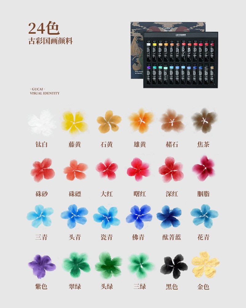 24 цвета/трубчатый пигмент для традиционной китайской живописи