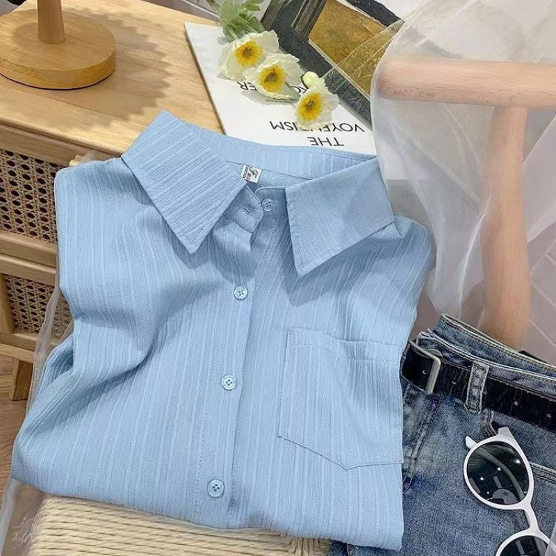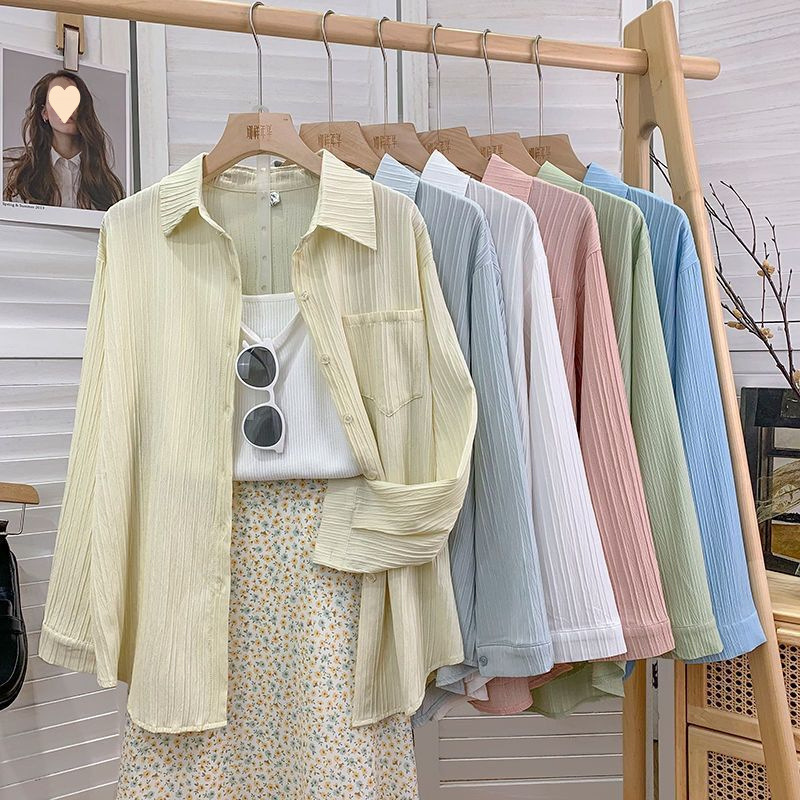 Главная страница > Расширенный текстурированный складчатый, свободная рубашка с длинными рукавами, женская осень, свежий дизайн, нишевые внутри и снаружи