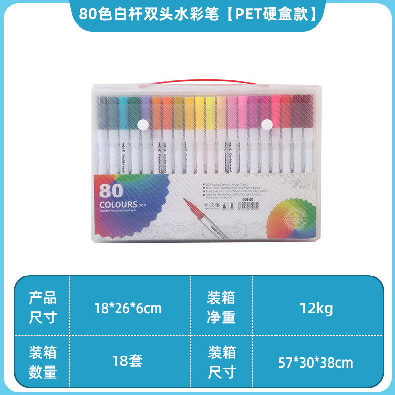Двусторонняя акварельная ручка [модель жесткой коробки из ПВХ с белым столбом 80 цветов]