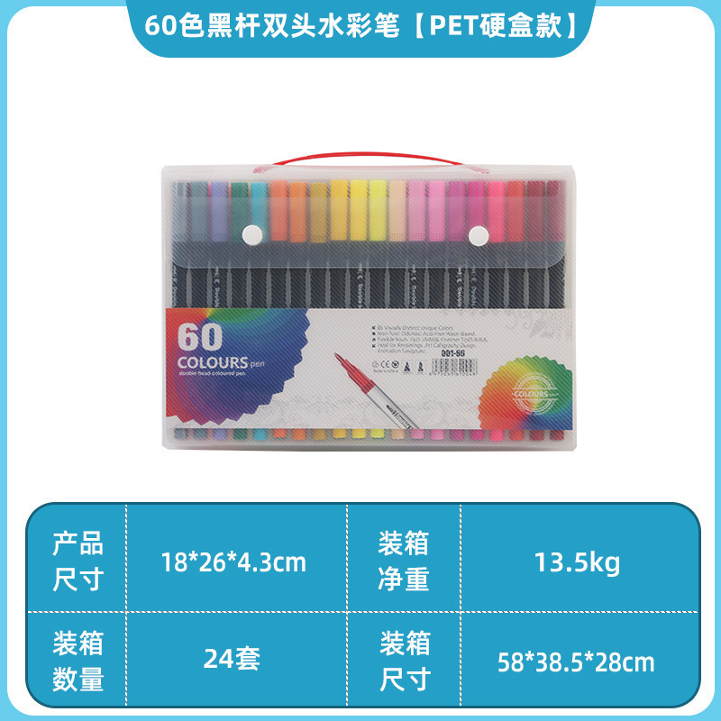 Двусторонняя акварельная ручка [модель жесткой коробки из ПВХ с черным столбом на 60 цветов]