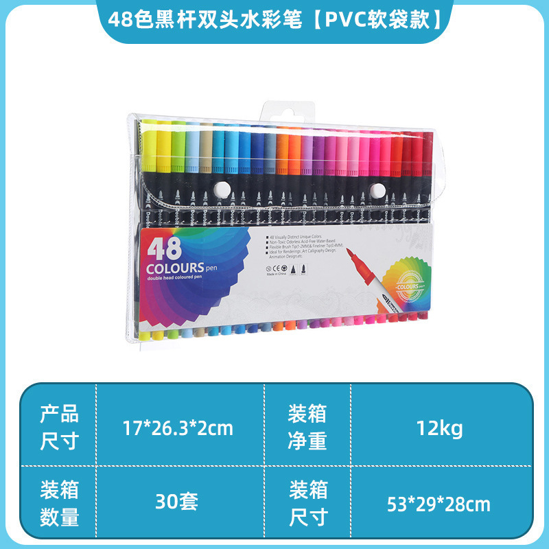 Двусторонняя акварельная ручка [модель мягкой сумки из ПВХ с черным столбом 48 цветов]