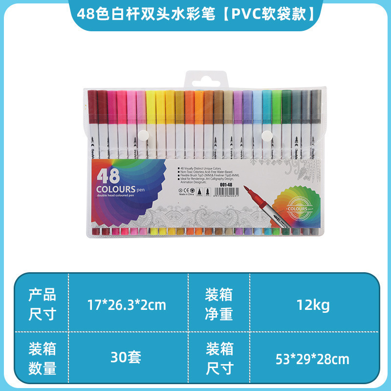 Двусторонняя акварельная ручка [модель мягкой сумки из ПВХ с белым столбом 48 цветов]