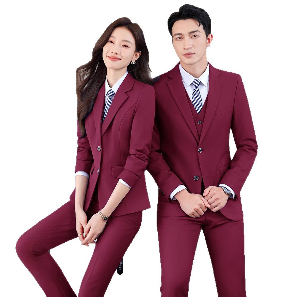 Женский модельный бордовый костюм + брюки + белая рубашка + жилет.