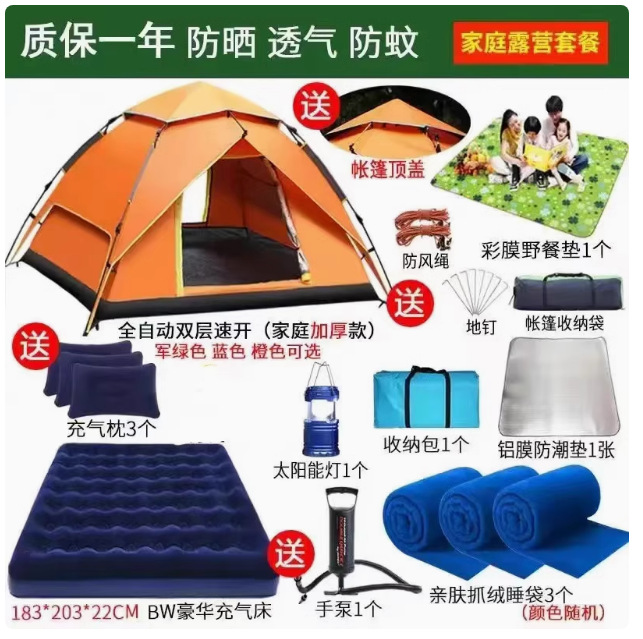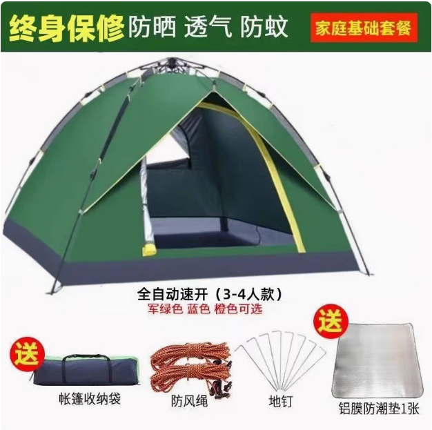 Полностью автоматическая палатка на открытом воздухе кемпинг на ночь 3-4 человек семьи утолщенный дождь одиночный двухслойный полевой кемпинг набор