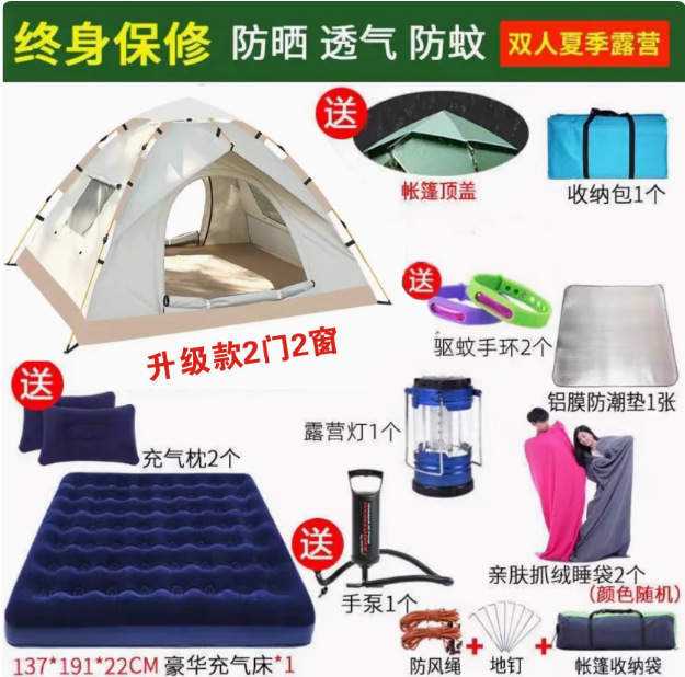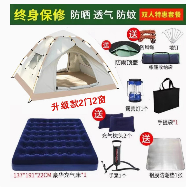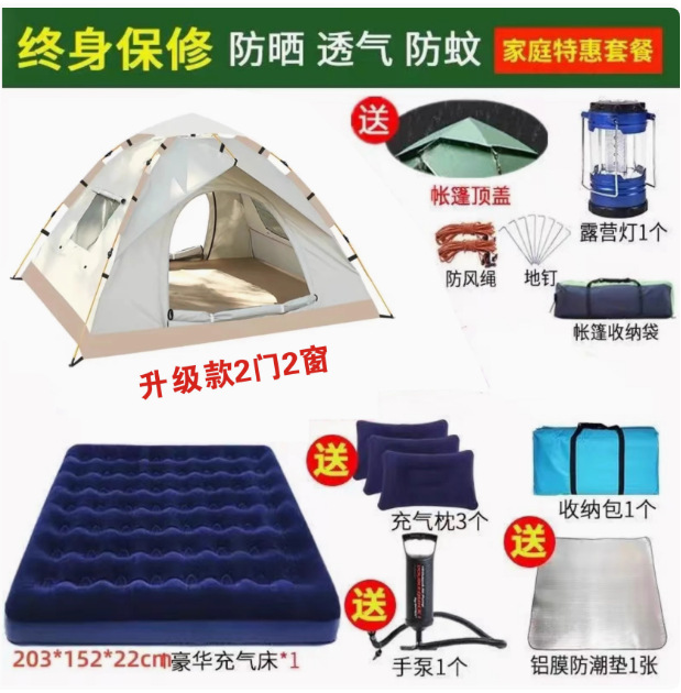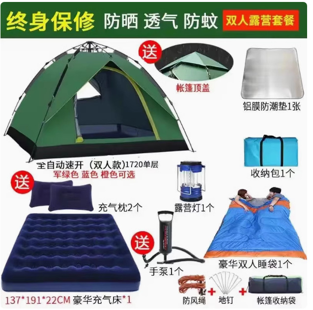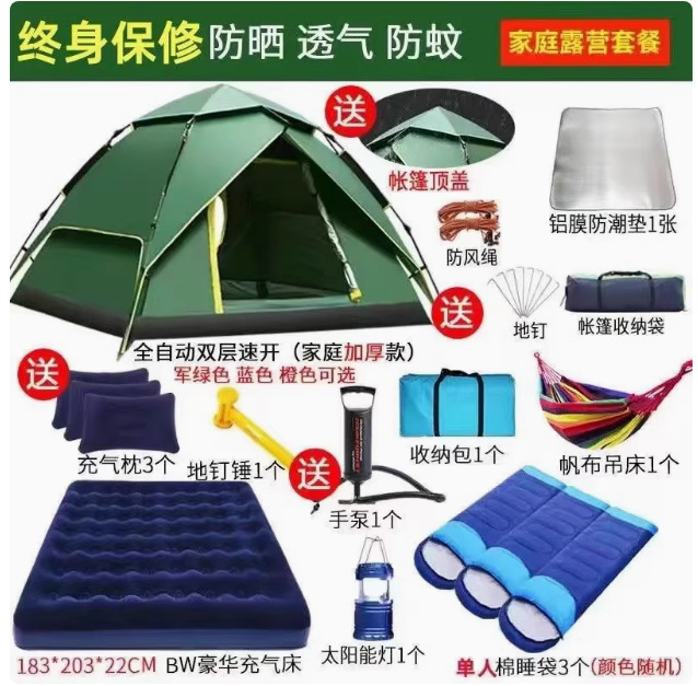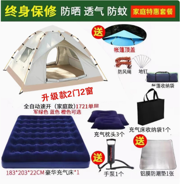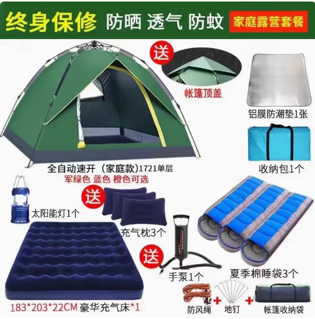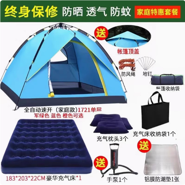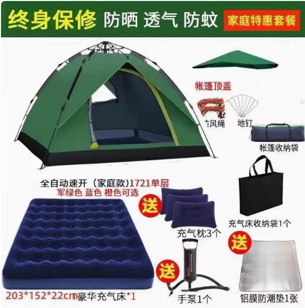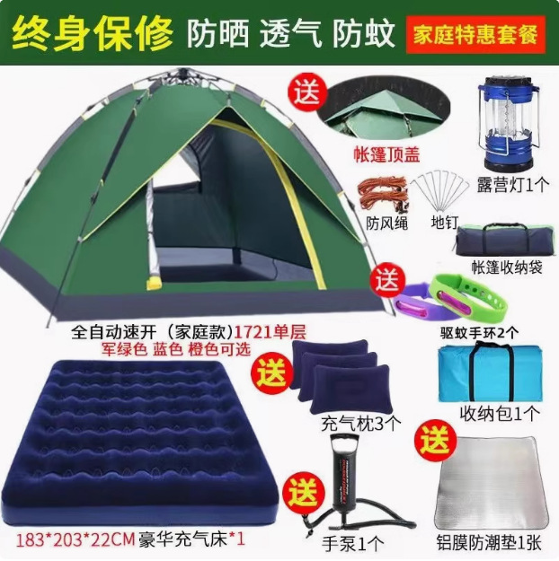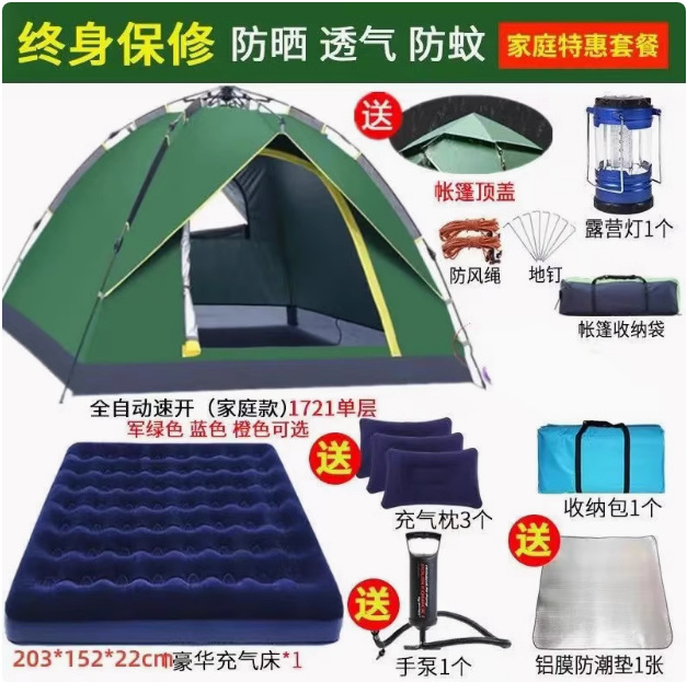 Главная страница > Полностью автоматическая палатка на открытом воздухе кемпинг на ночь 3-4 человек семьи утолщенный дождь одиночный двухслойный полевой кемпинг набор