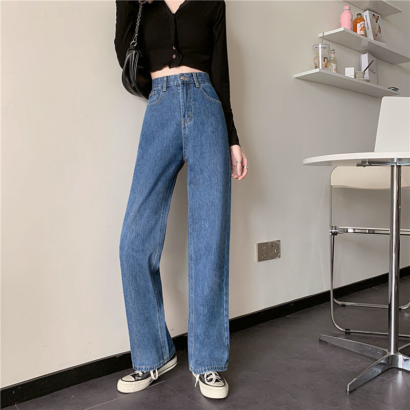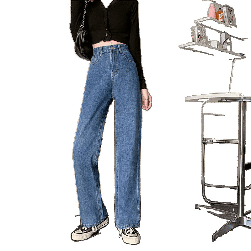 Главная страница > Широкие женские джинсы с высокой талией, универсальные свободные прямые брюки для похудения, новые драпированные брюки в корейском стиле для миниатюрных студентов.