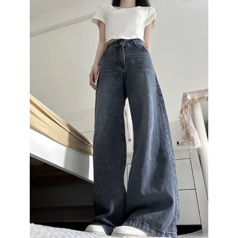 Главная страница > Женские джинсы с микро-клеш в стиле ретро, весна и лето 2025, новые прямые свободные брюки с высокой талией, утягивающие драпированные брюки длиной до пола