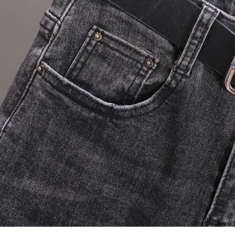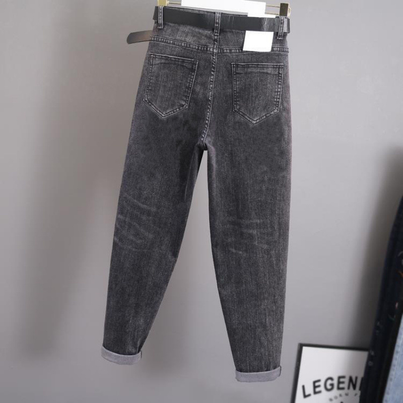 Главная страница > Серые узкие джинсы с высокой талией для женщин, весна-осень 2025, новые повседневные свободные эластичные брюки-картофельки в стиле «папа»