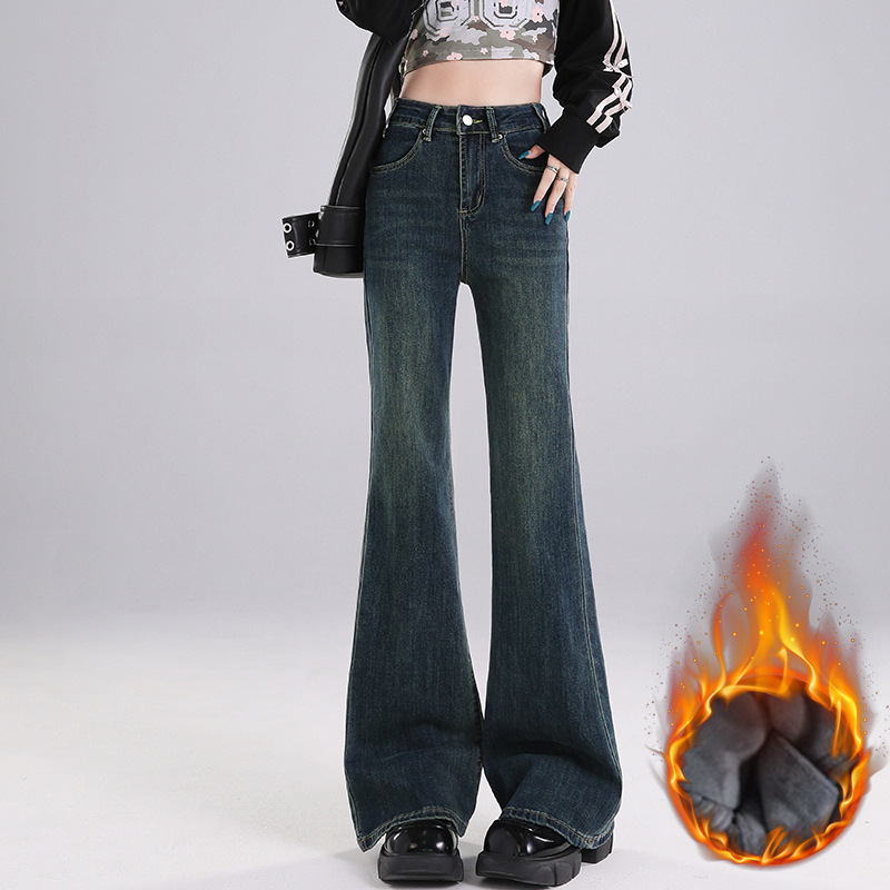 Не приклеенные ноги микро-рога джинсы женские вышитые осенние и зимние ретро с высокой талией тонкие маленькие стрижки длинные брюки