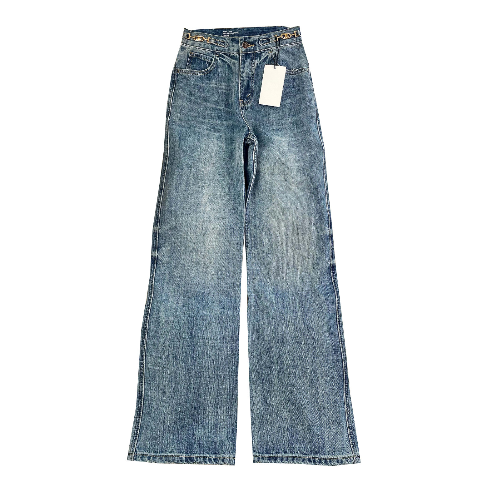 Летние европейские товары 2025: Элитные женские джинсы Nanyou с двойной застежкой на цепочке на талии, прямые широкие штанины, высокая талия, модель CE Arc de Triomphe