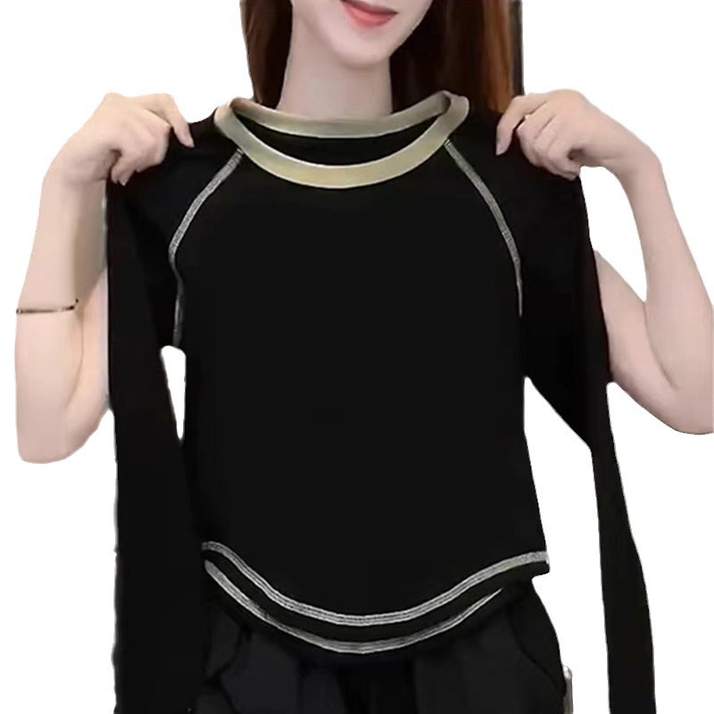 Главная страница > Бархатная нижняя рубашка, Женская осенне-зимняя черная футболка с круглым вырезом на флисовой подкладке и длинным рукавом с внутренней стороны, Короткий Плотный шикарный топ в тон