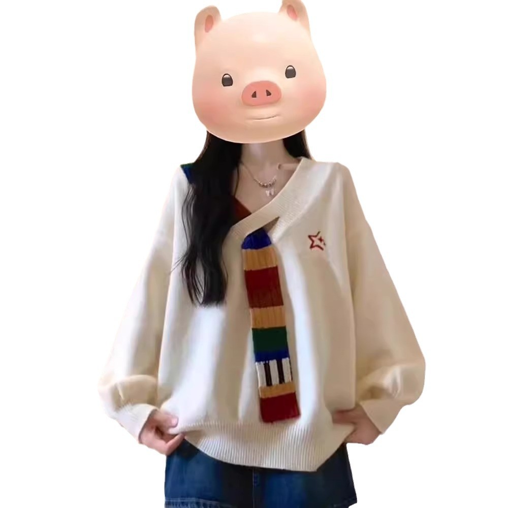Главная страница > 2024 осень новая женская мода ретро вязаный свитер с длинными рукавами свободная куртка Академия стиль высокого уровня чувство свитер женский