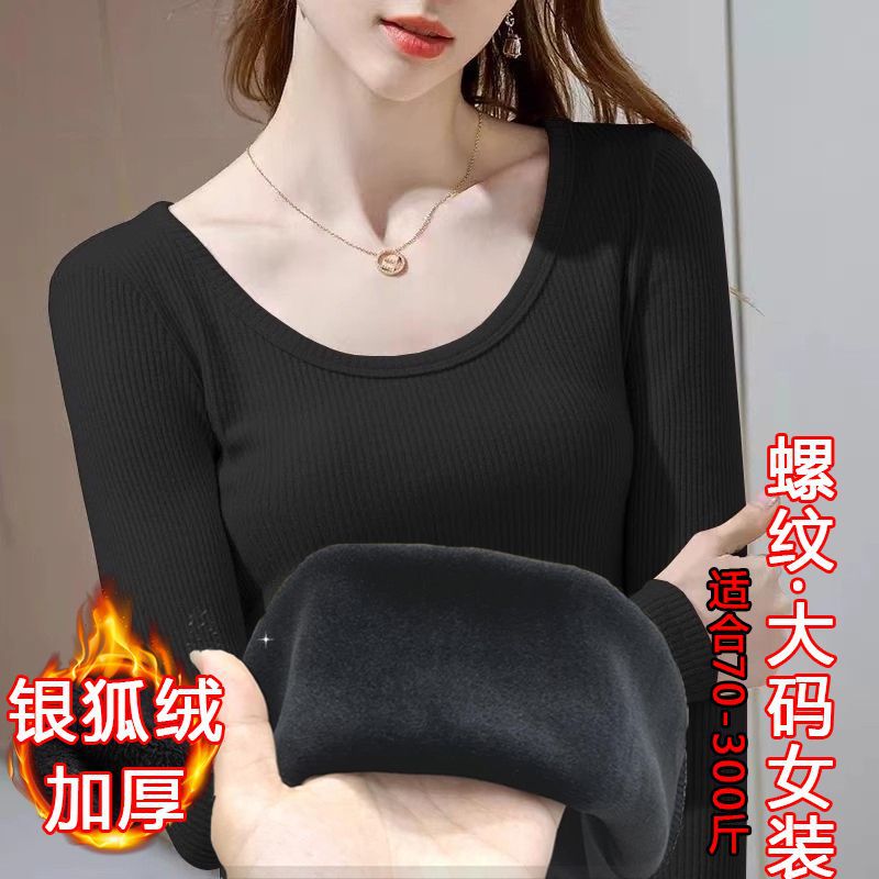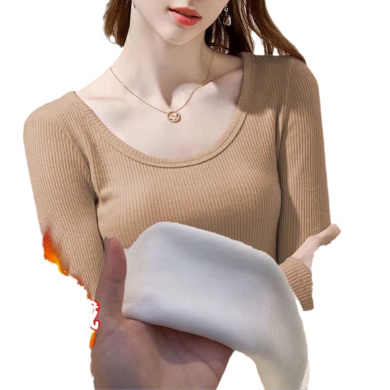 Главная страница > 2024 Белая тонкая футболка с длинными рукавами осенняя и зимняя новая корейская нижняя рубашка с плюшевым U-образным вырезом