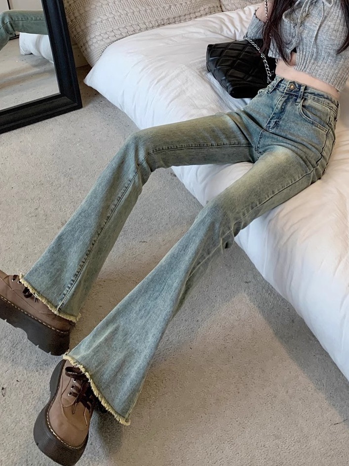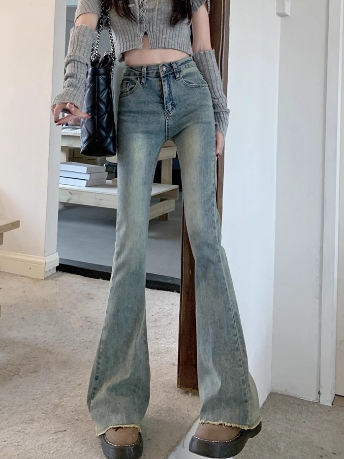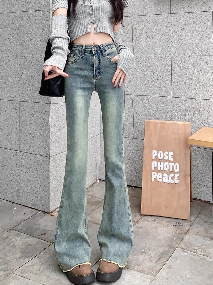 Главная страница > Винтажные женские джинсы с микрорасклешенными краями, новинка на весну и осень, эластичные облегающие универсальные модные брюки с подковой для похудения