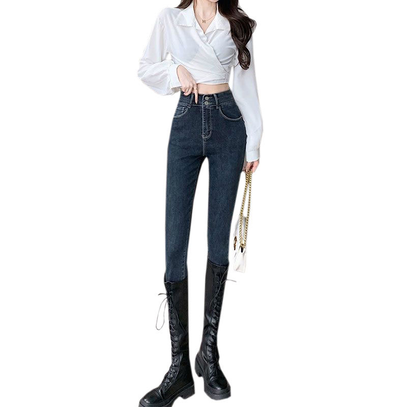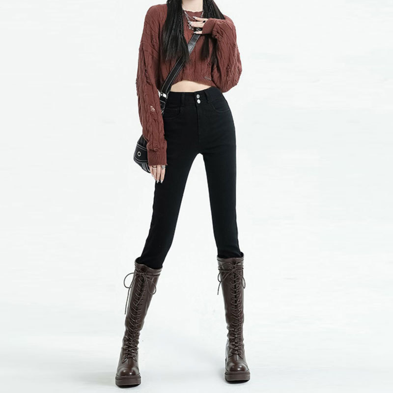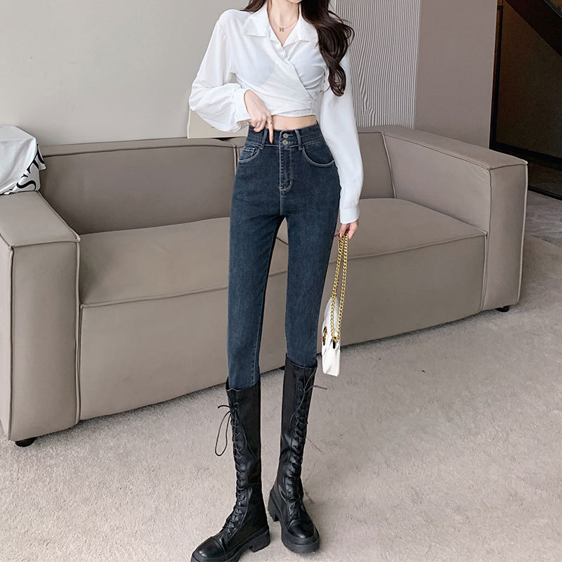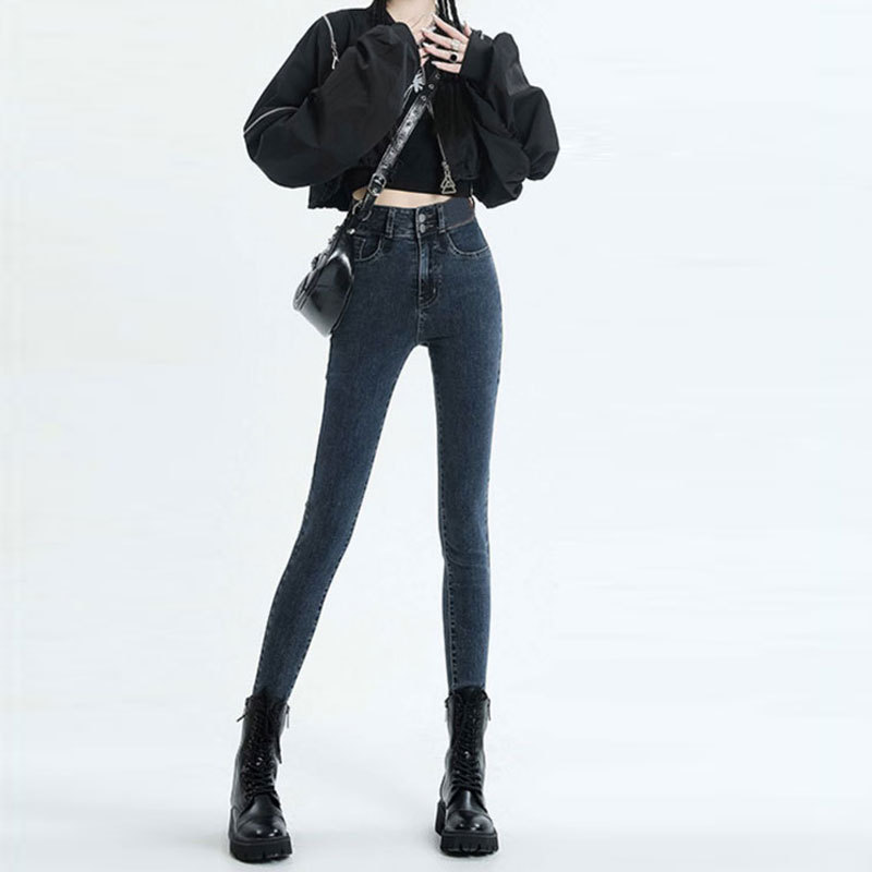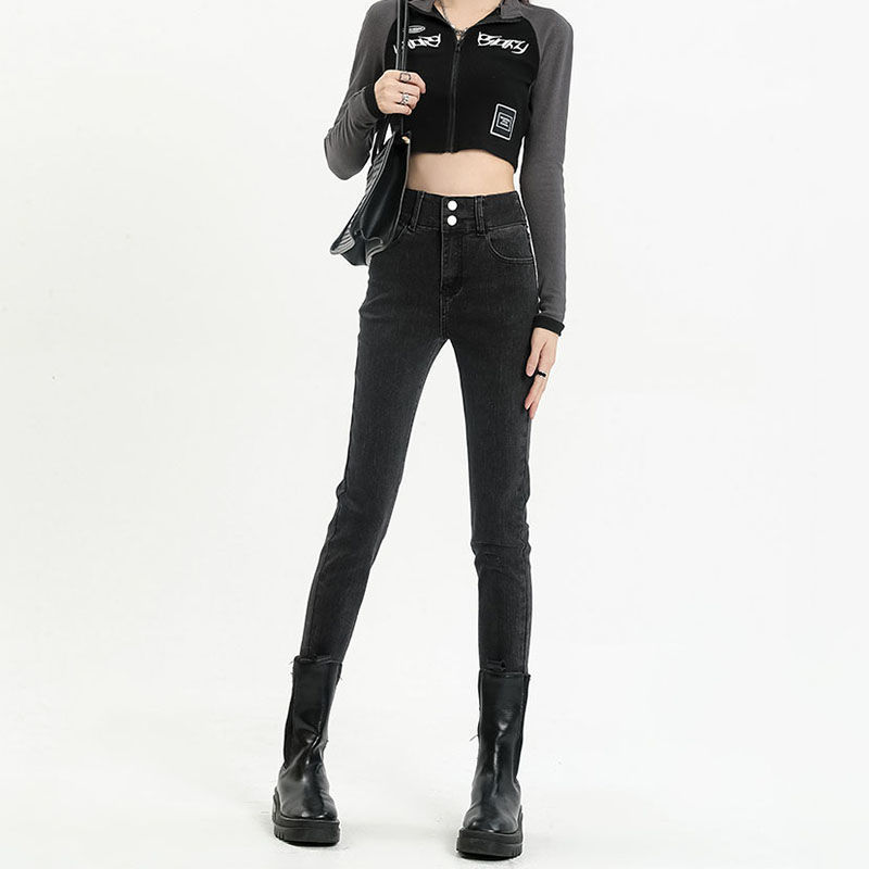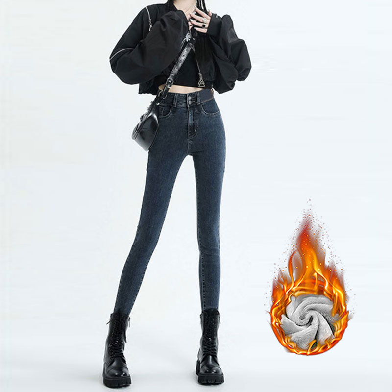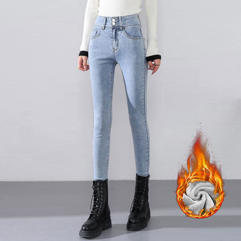 Главная страница > Джинсы с высокой талией на двойных пуговицах, женские осенне-зимние облегающие эластичные облегающие брюки-карандаш до щиколотки на флисовой подкладке