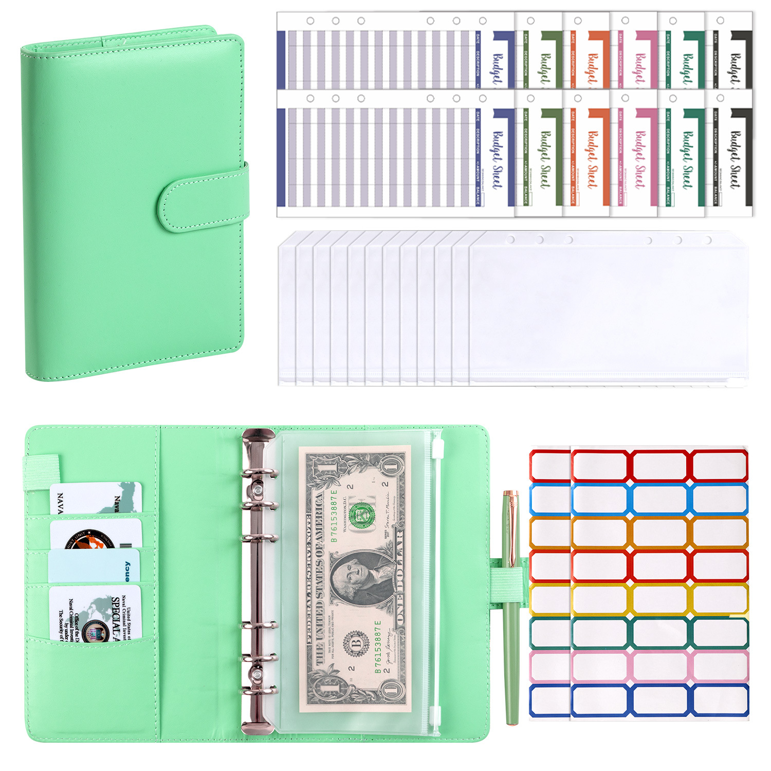 Темно-зеленый (корпус) 8 сумка на молнии A6 наличными бюджетная карта (12 шт) 2 наклейки на английском языке