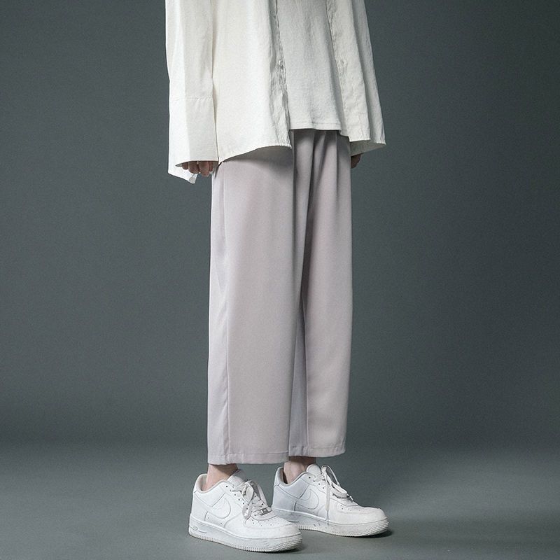 Главная страница > Брюки мужские летние тонкие в Корейском стиле модные повседневные брюки Ice Silk свободные прямые широкие штанины укороченный костюм мужские брюки