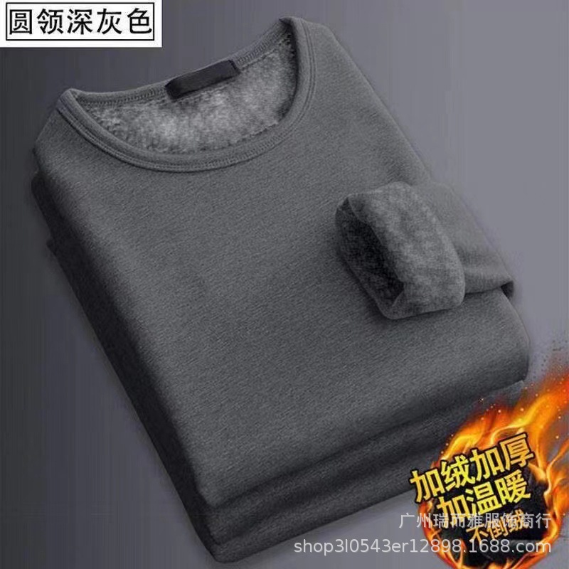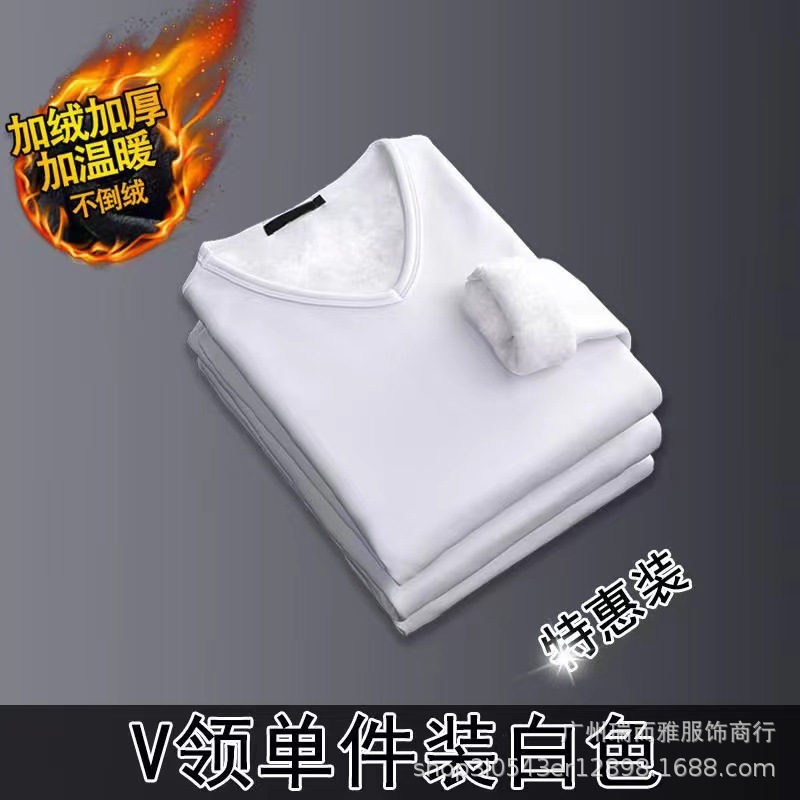 Главная страница > Осенне-зимняя футболка с длинными рукавами Мужская утолщенная Базовая рубашка на флисовой подкладке, термобелье из чистого хлопка с круглым вырезом и чистым белым топом