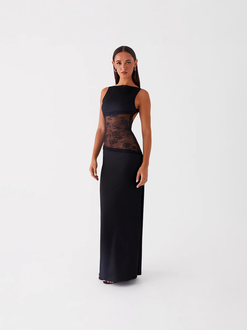 Главная страница > 2025 новый европейский и американский трансграничный летний сексуальный тонкое кружево атласное сшитое длинное платье без спинки тонкое платье женское