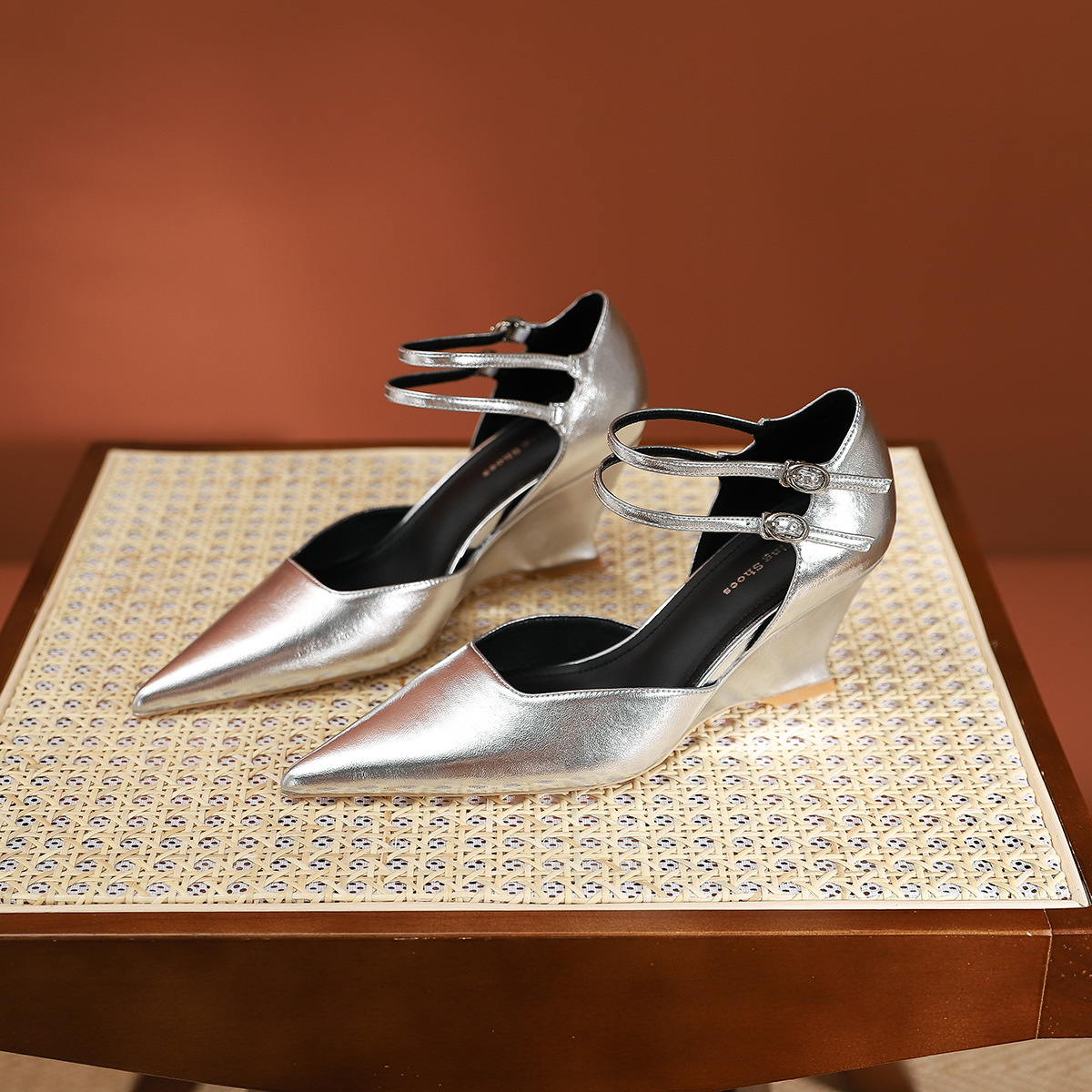 Главная страница > 339-1 туфли на каблуке с острым концом Новые туфли с острым концом и неглубоким ртом серебристый увеличенный мягкий низ туфли на высоком каблуке женские