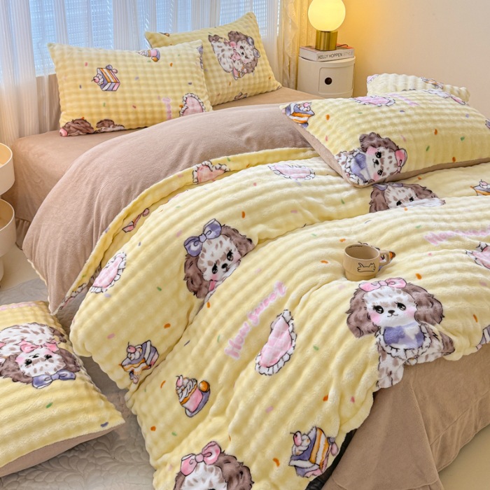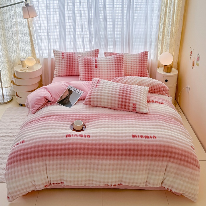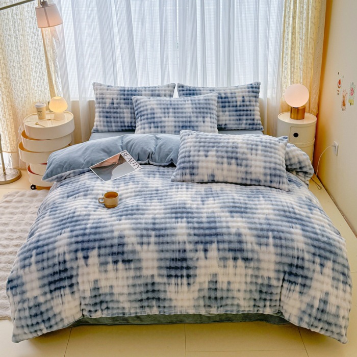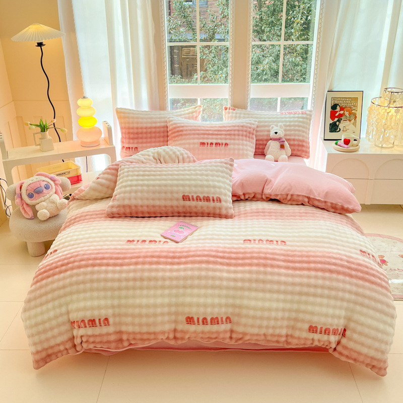 Зимний молочный пух стеганое одеяло набор из четырех частей утолщенный двухсторонний бархат теплых простыней из трех частей Студенческое общежитие