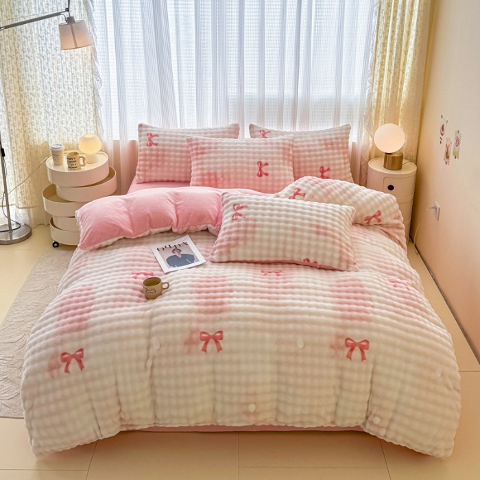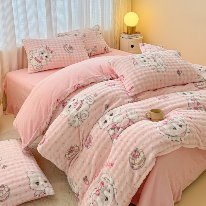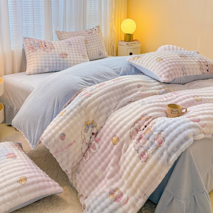 Главная страница > Зимний молочный пух стеганое одеяло набор из четырех частей утолщенный двухсторонний бархат теплых простыней из трех частей Студенческое общежитие