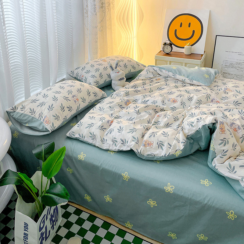 Главная страница > Nordic ins Комплект из четырех предметов из чистого хлопка 100 маленьких свежих пододеяльников Простыня Пододеяльник Постельное белье Шляпа для спальни Комплект из трех предметов
