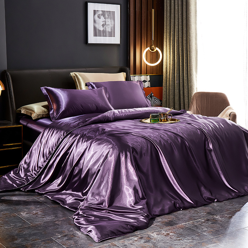 Главная страница > Легкий роскошный Шелковый комплект из четырех предметов в европейском стиле, однотонное шелковое одеяло тутового дерева, шелковая атласная простыня, постельное белье 1,8 м, постельное белье