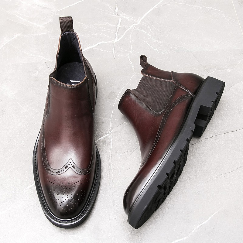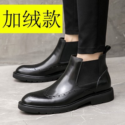 Главная страница > Ботинки Челси, мужские высокие Британские кожаные ботинки на флисовой подкладке из воловьей кожи, повседневные ботильоны с брогами и резной отделкой, мужские кожаные ботинки Martin