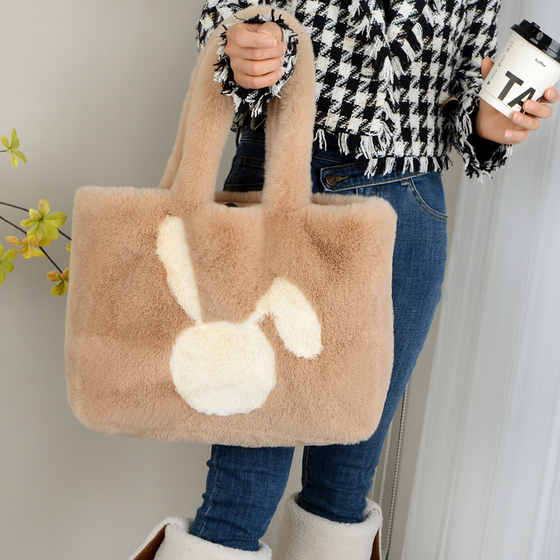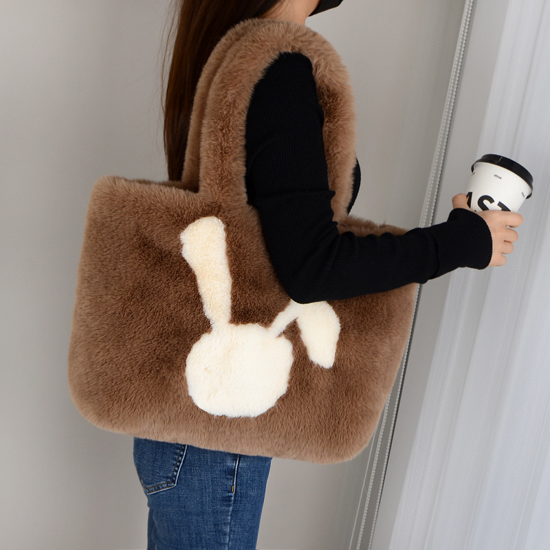 Главная страница > Плюшевая сумка большой емкости для женщин 2023 новая осенне-зимняя Милая кроличья большая сумка студенческая сумка через плечо