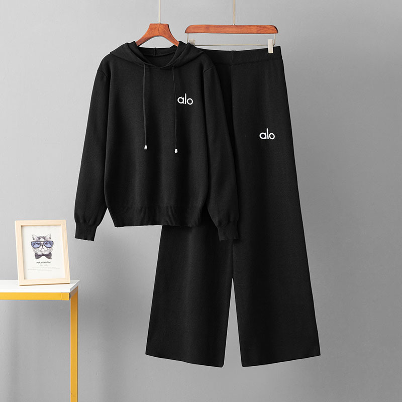 Женский костюм из шерсти: свободный худи с вышивкой и широкие брюки, оптовая продажа для трансграничной торговли