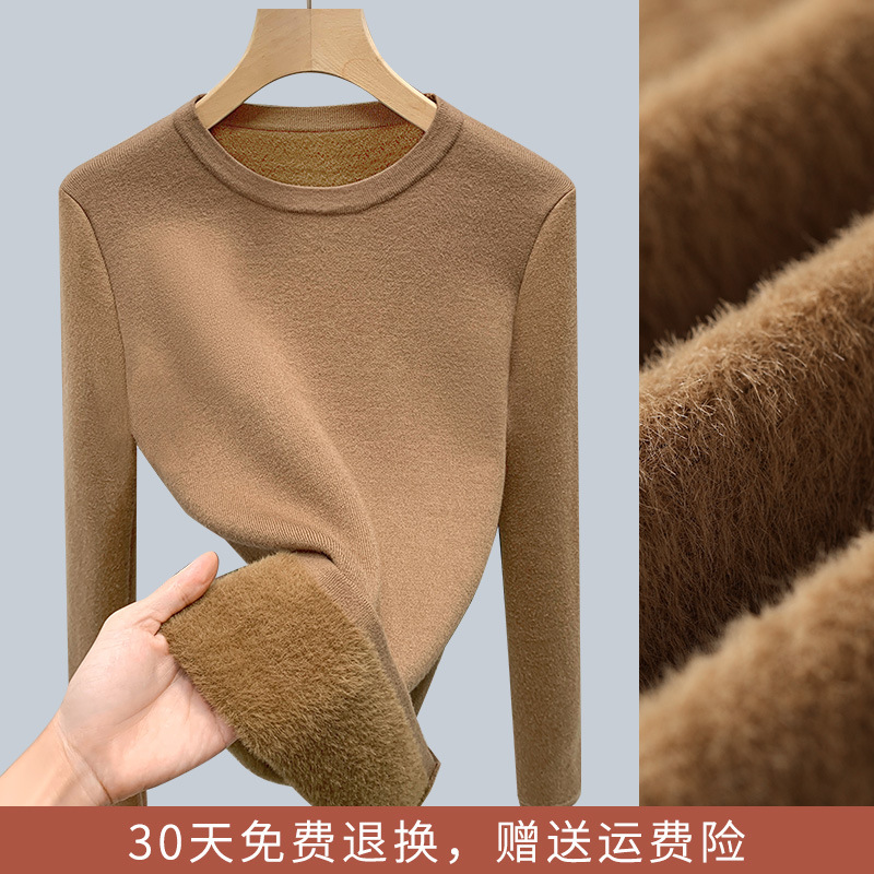 Главная страница > Вязаная Базовая рубашка Женская 2023 Новая женская однотонная с круглым вырезом на флисовой подкладке утолщенный пуловер свитер теплый внутренний топ