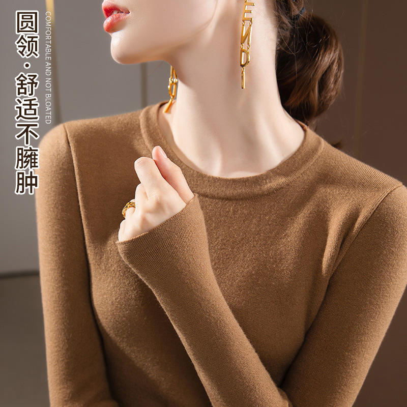 Вязаная Базовая рубашка Женская 2023 Новая женская однотонная с круглым вырезом на флисовой подкладке утолщенный пуловер свитер теплый внутренний топ