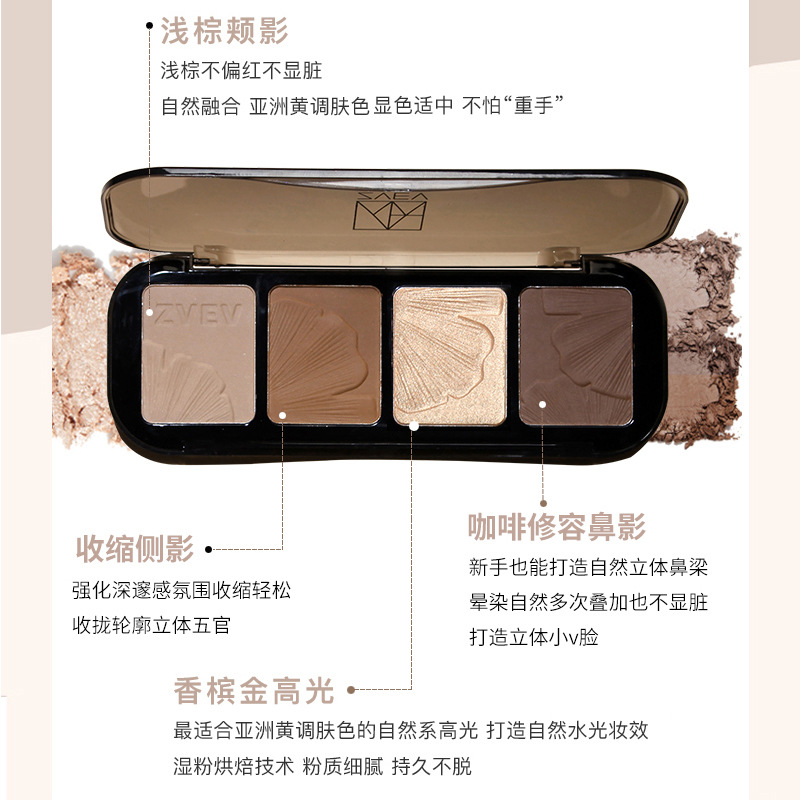 ZVEV Четырехцветная ремонтная пластина подсветка матовая осветление Блеск тени для носа подсветка ремонтная пластина интегрированная пластина трансграничная