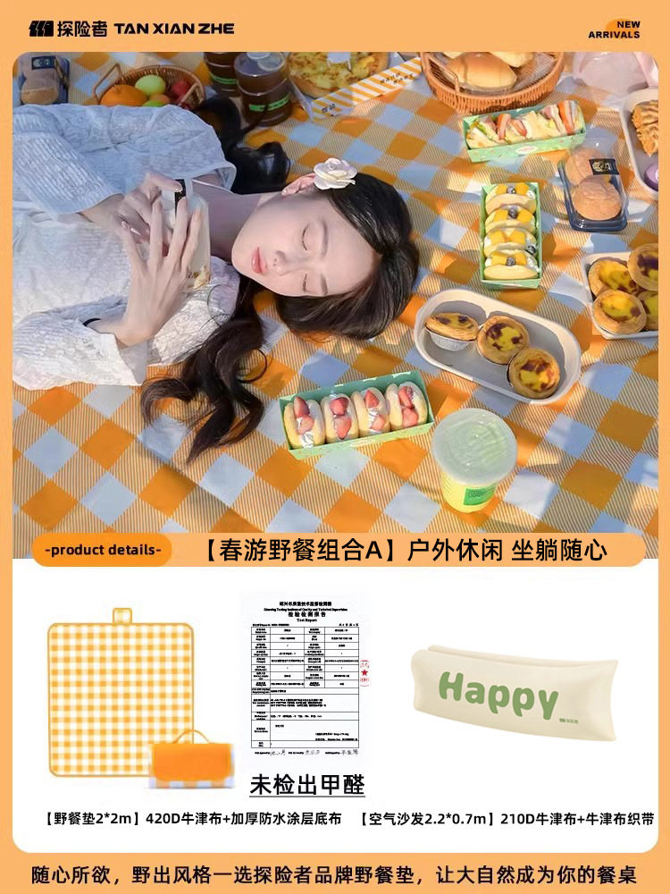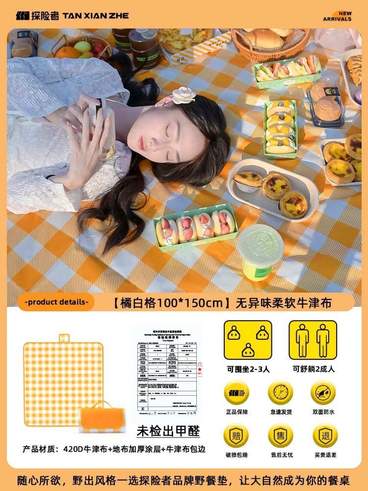 Комбинация «сидение и лежание» для весеннего пикника A [белый диван + оранжевый и белый коврик для пикника] грузоподъемность 260.5kg