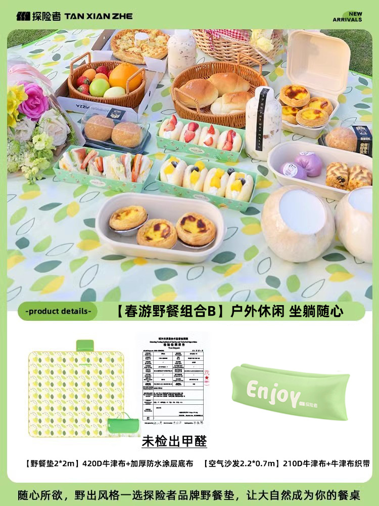 Комбинация «сидя и лежа» для весеннего пикника B [зеленый воздушный диван + коврик для пикника с летающими листьями] грузоподъемность 260.5kg