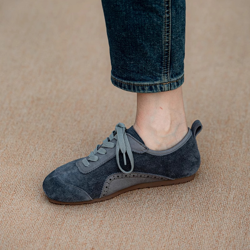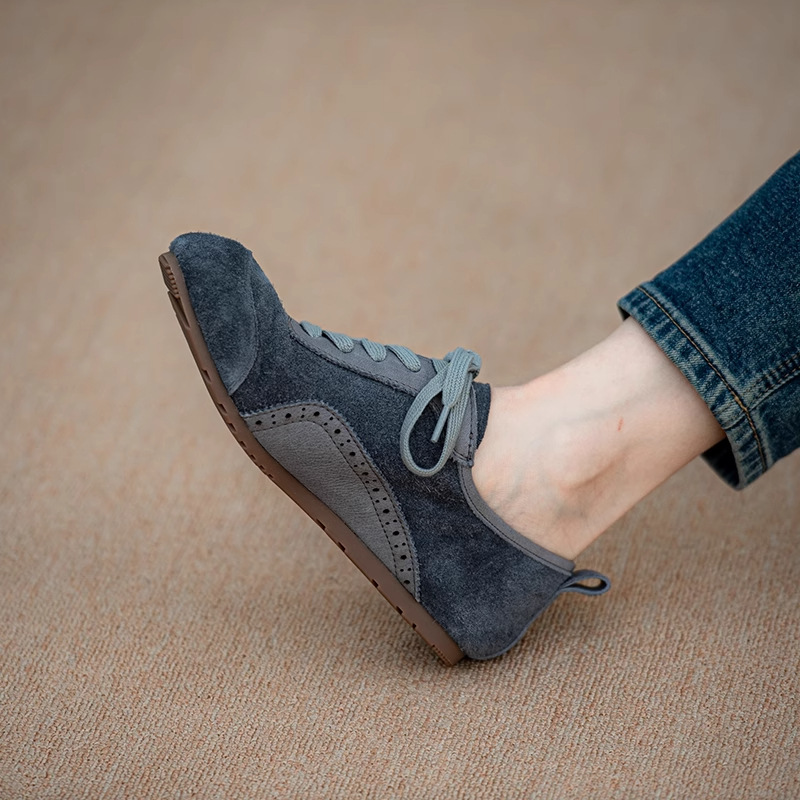 Серая натуральная кожа из воловьей кожи, новинка 2025 года, уличная обувь для морального тренинга, женская повседневная обувь на плоской подошве, женская обувь на плоской подошве из натуральной кожи, какая уродливая женская обувь