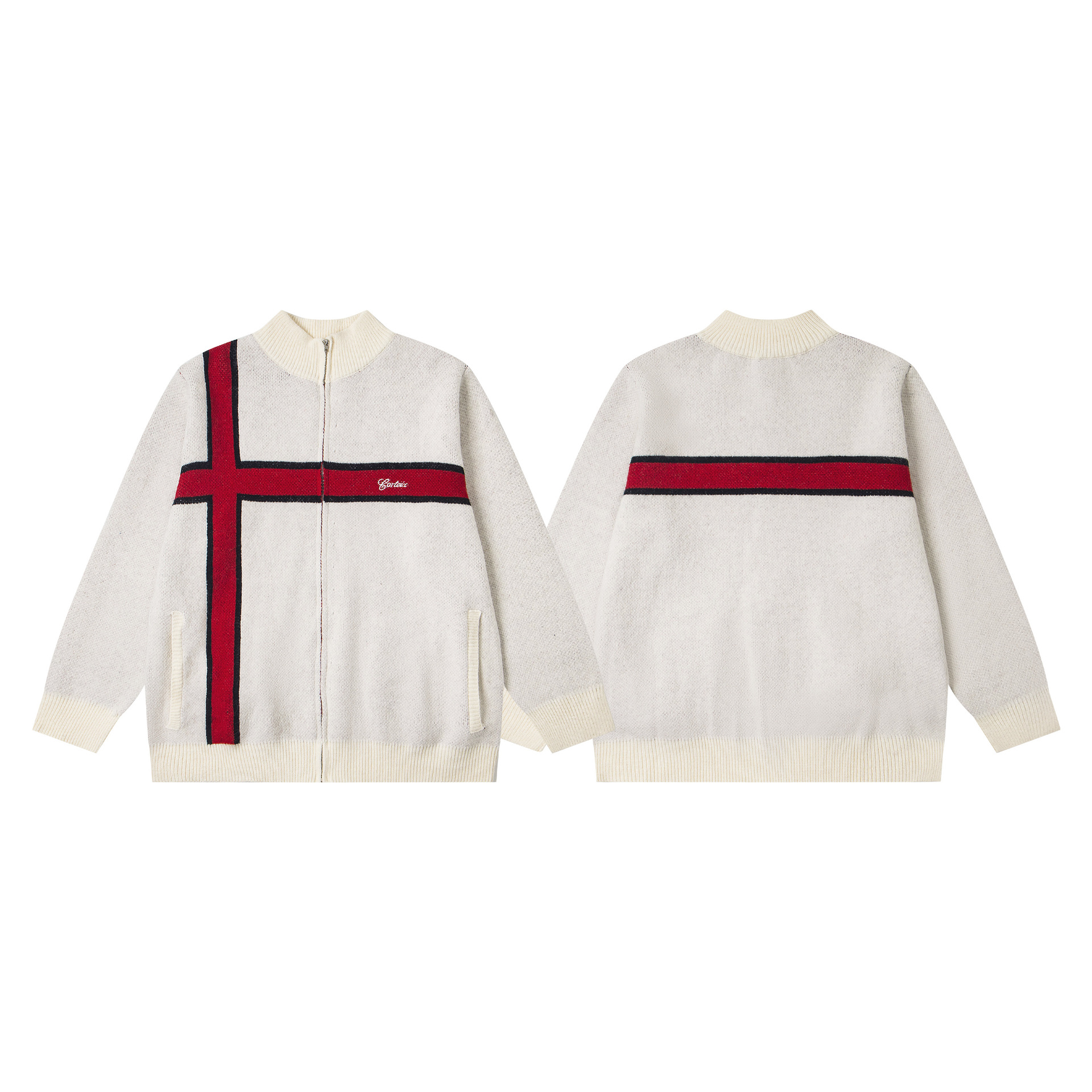 Главная страница > Кардиган-жакет Croteiz в стиле стрит-хип-хоп с вышитыми буквами, воротником-стойкой, молнией и красно-синей отделкой