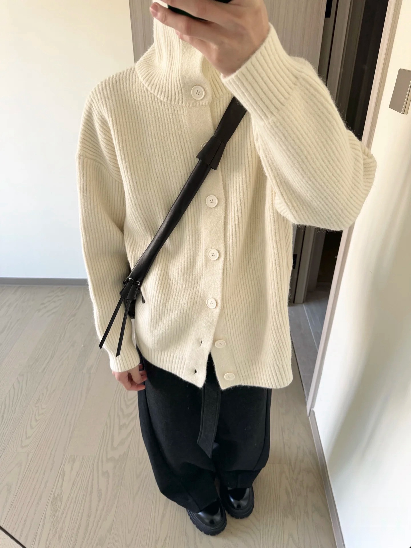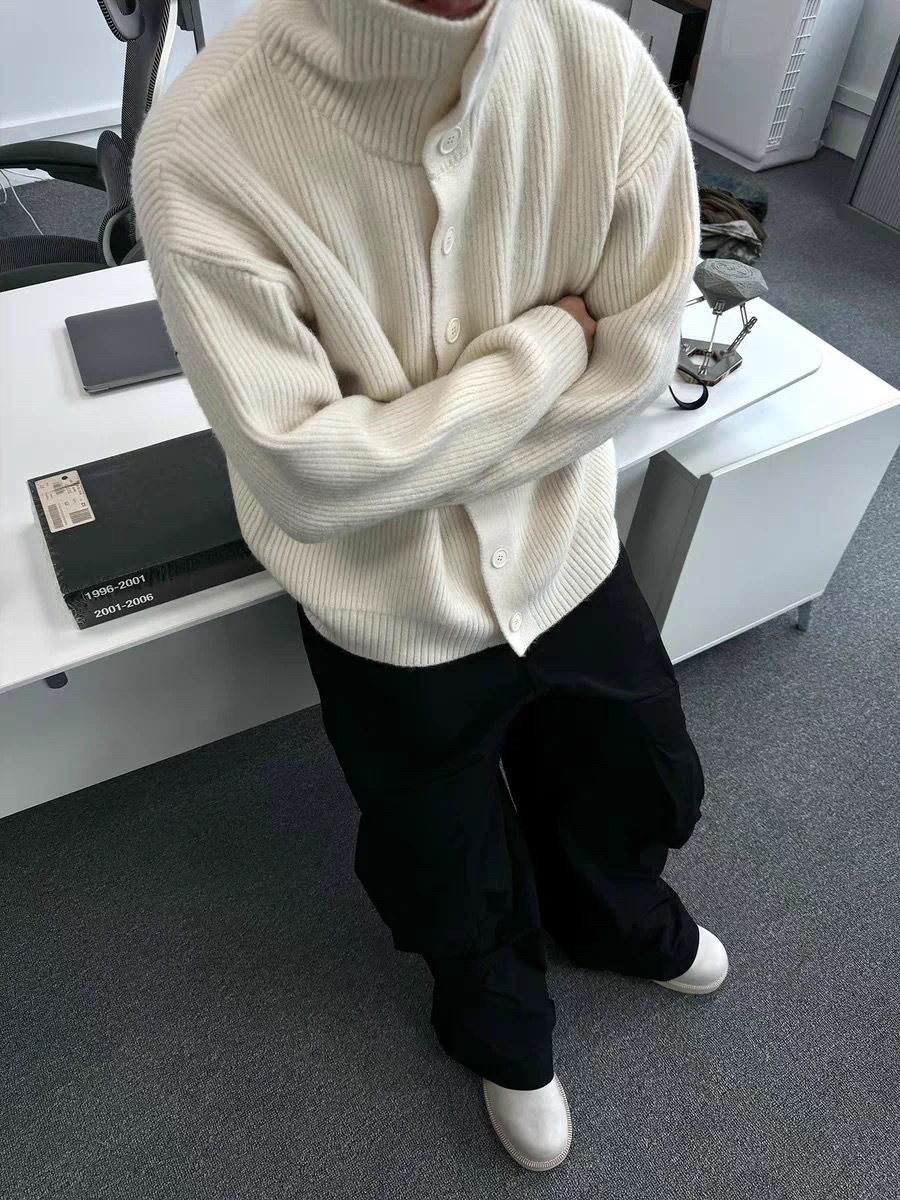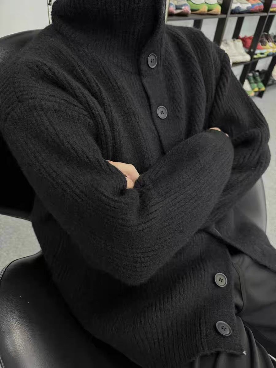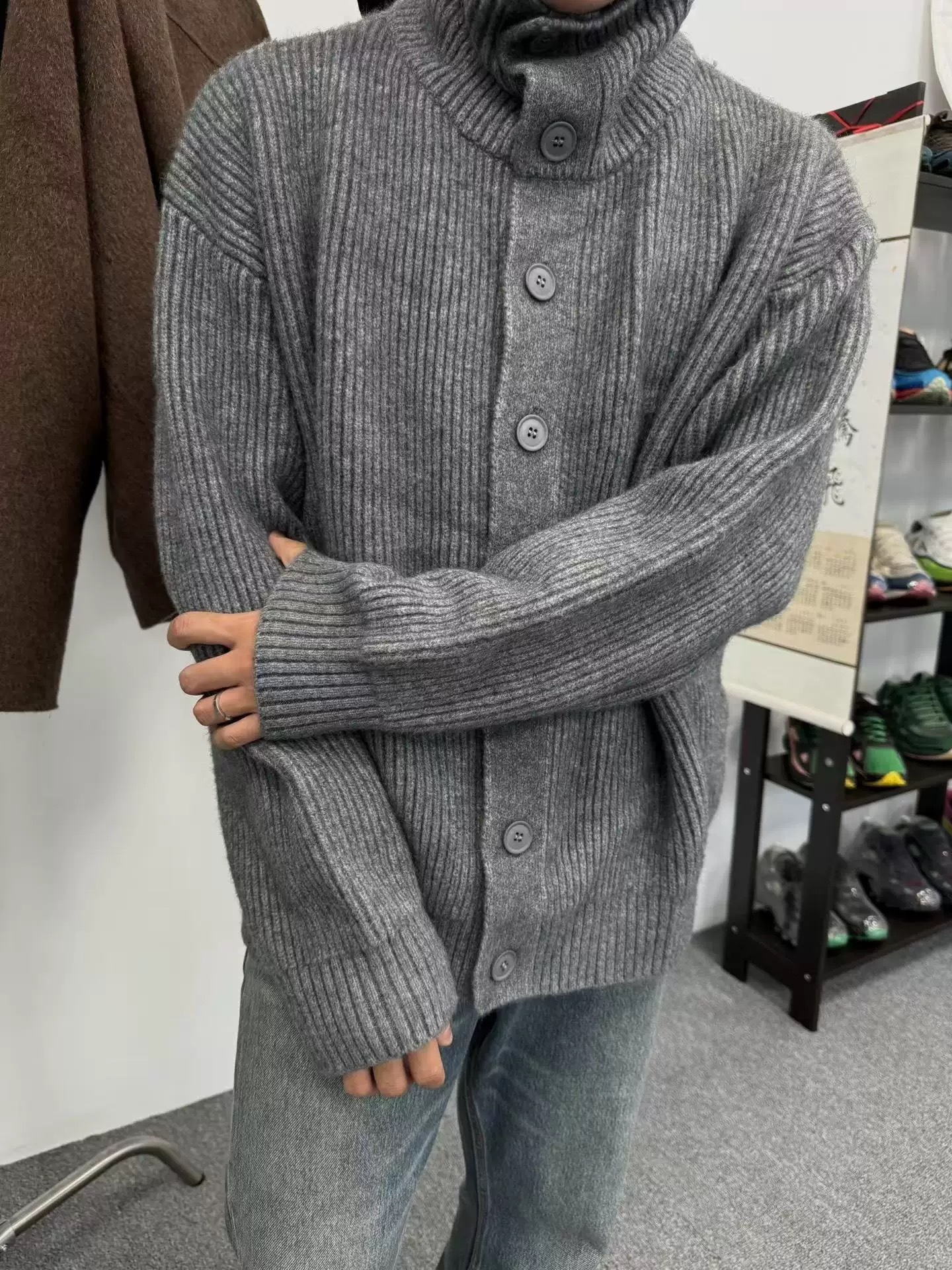 Главная страница > Высокие товары Сверхтолстый трехцветный кардиган с высоким вырезом свитер Mailad свободная повседневная дикая вязаная куртка с длинными рукавами