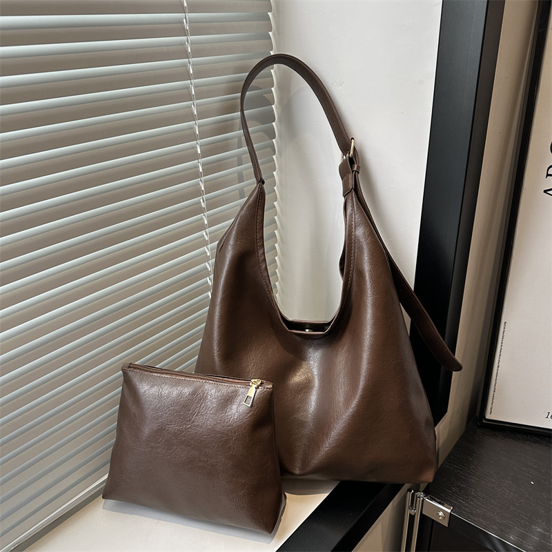 Главная страница > Модная сумка из мягкой кожи, женская простая повседневная сумка-тоут, вместительная ретро-сумка для мамы и дочки.